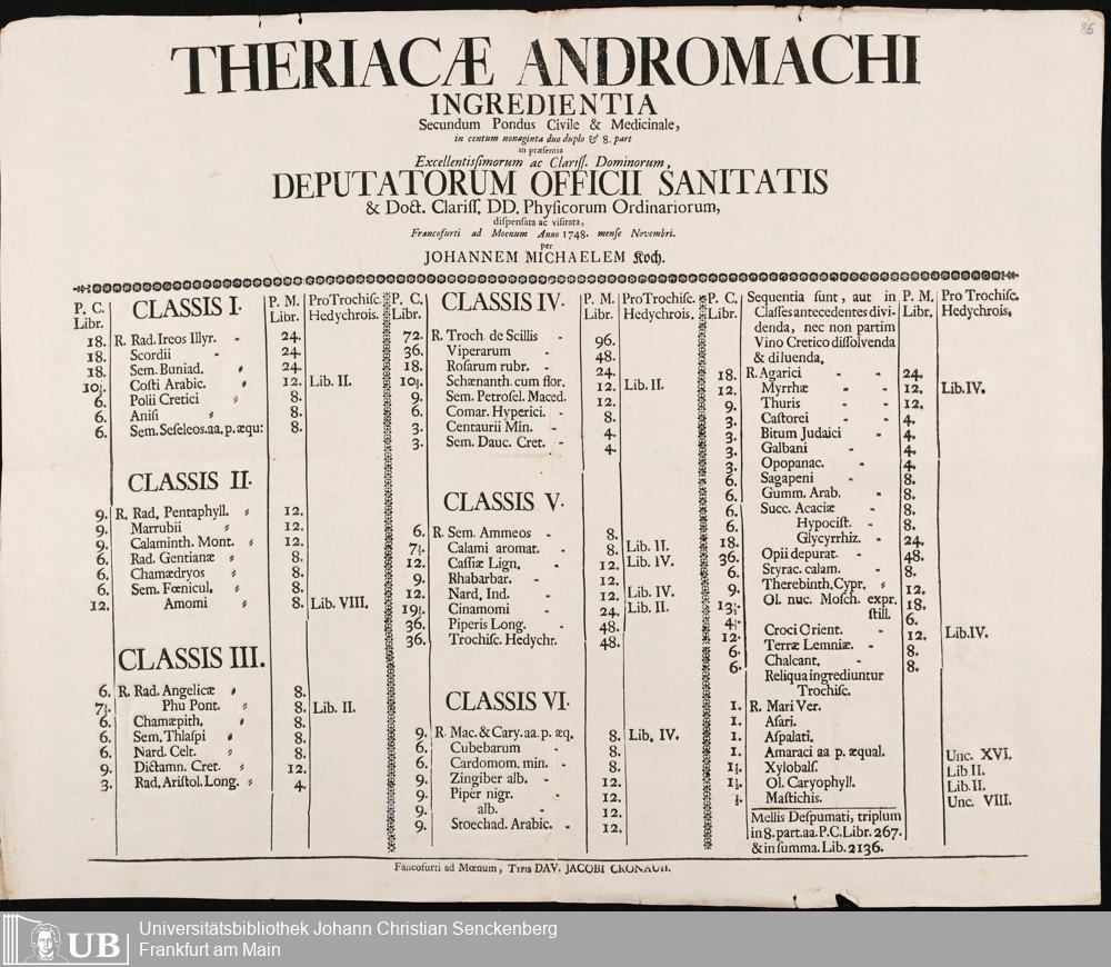 Na 31 Nachlass Johann Christian Senckenberg, 275 - Nachrichten de Compositionibus Theriacae
