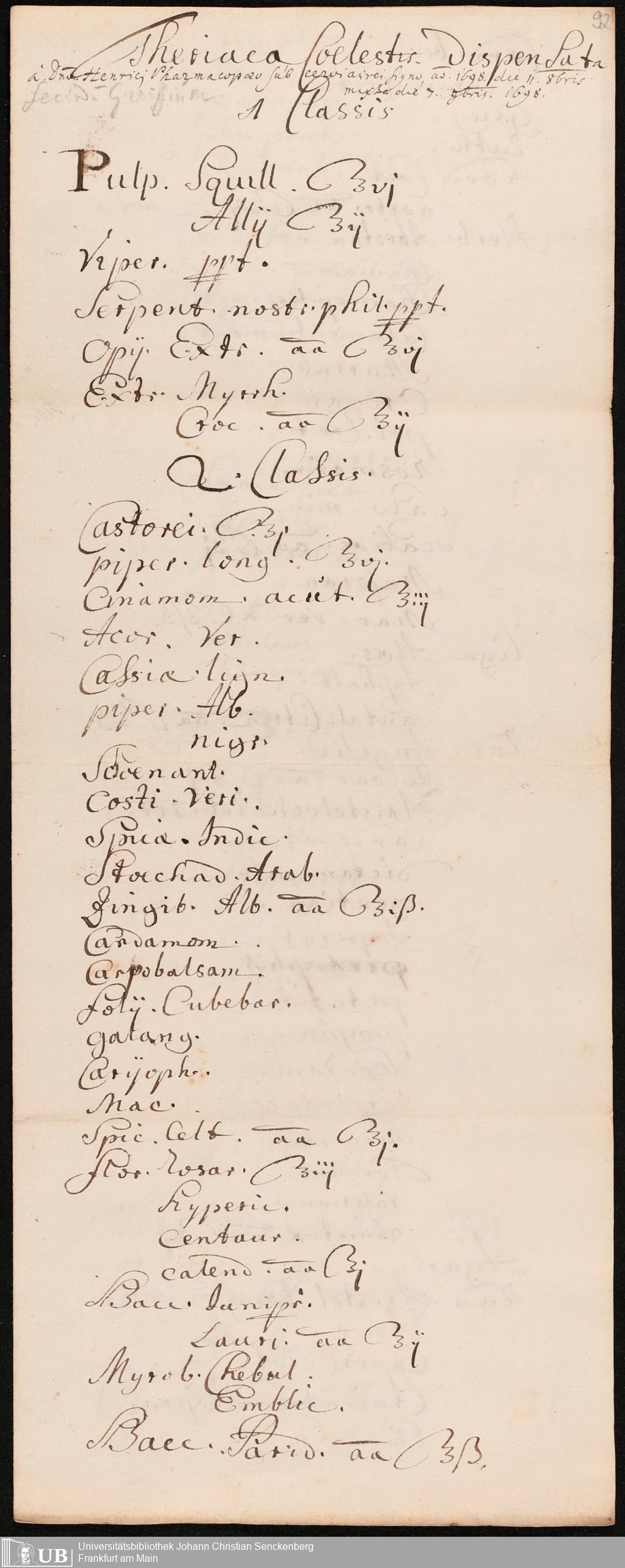 Na 31 Nachlass Johann Christian Senckenberg, 275 - Nachrichten de Compositionibus Theriacae