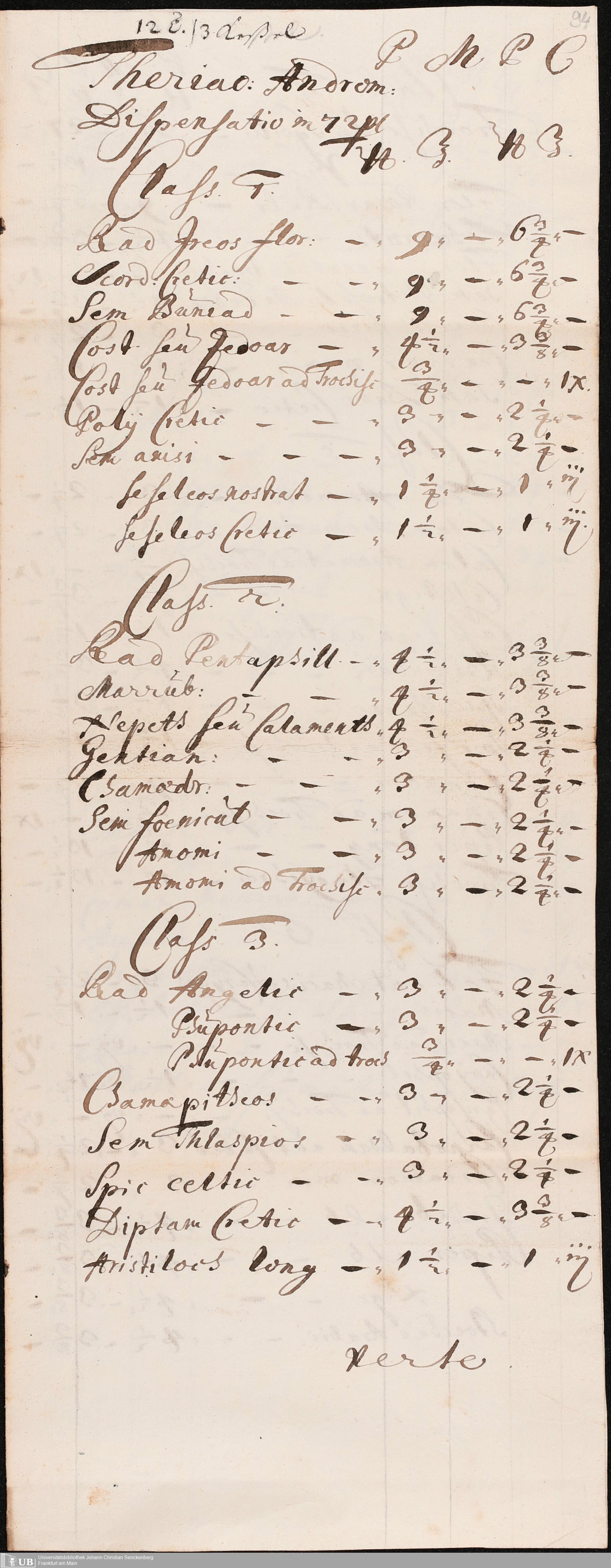 Na 31 Nachlass Johann Christian Senckenberg, 275 - Nachrichten de Compositionibus Theriacae