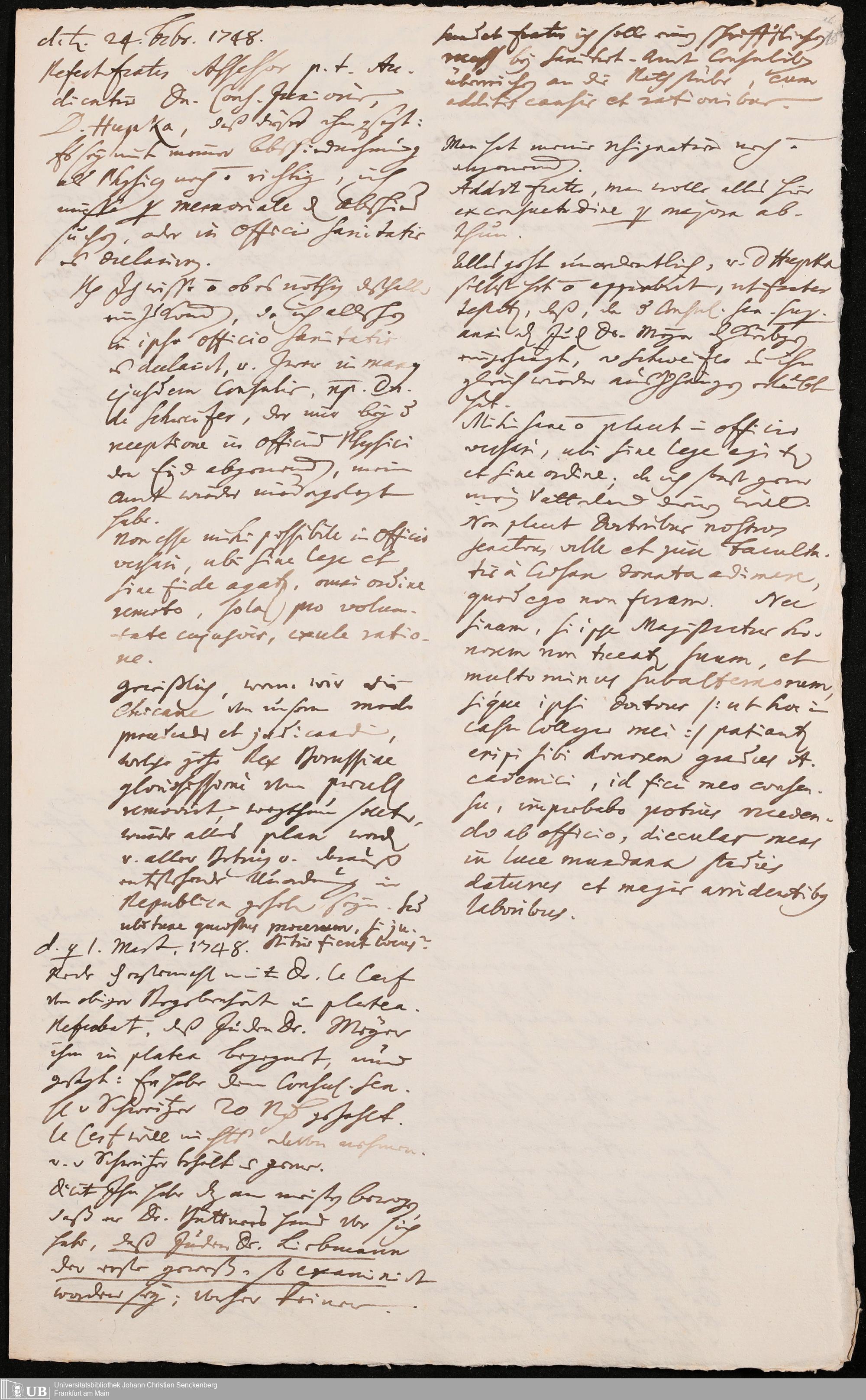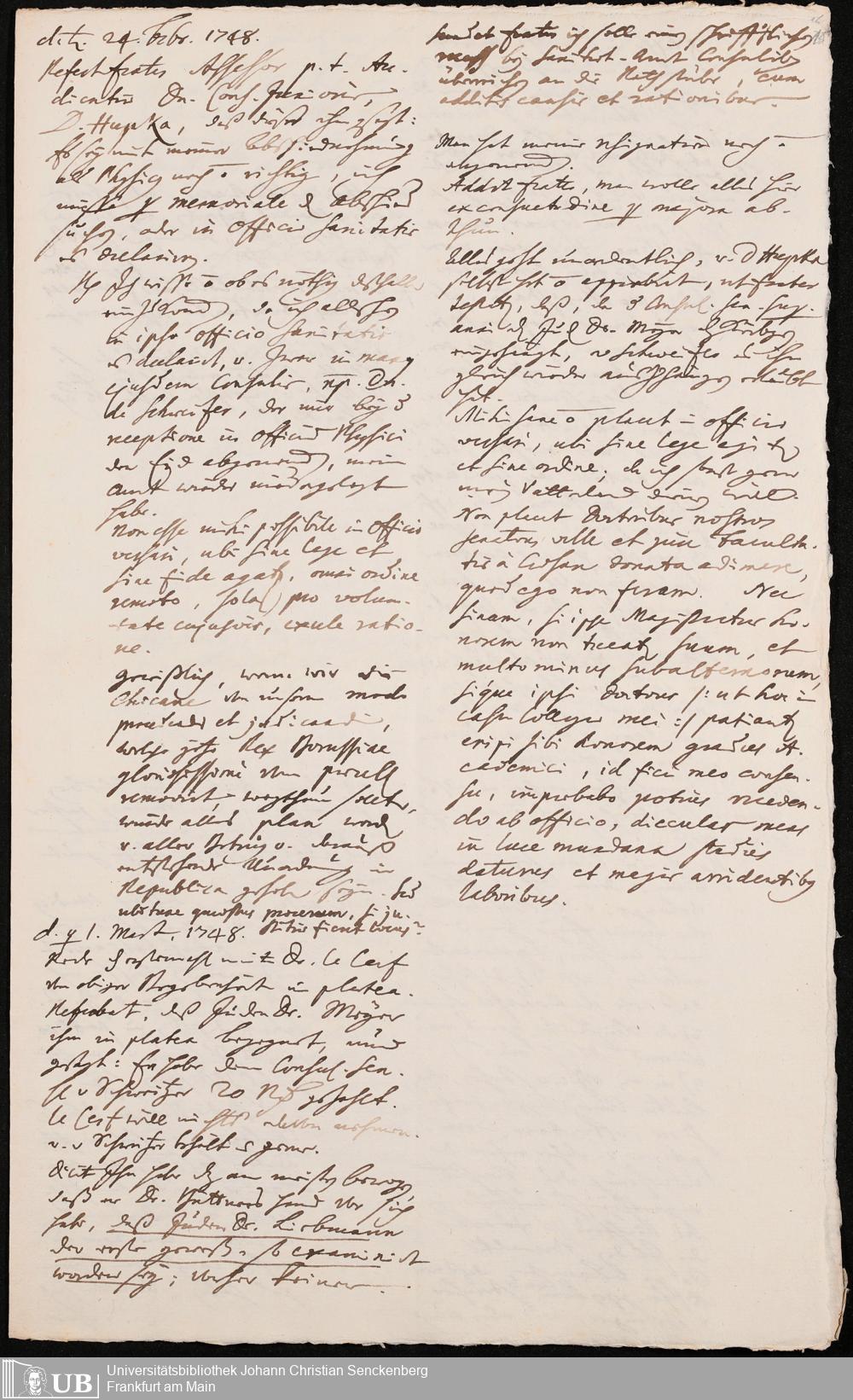 Na 31 Nachlass Johann Christian Senckenberg, 302 - Eingaben an den Senat und Beschlüsse über die Zulassung von Judenärzten in Frankfurt