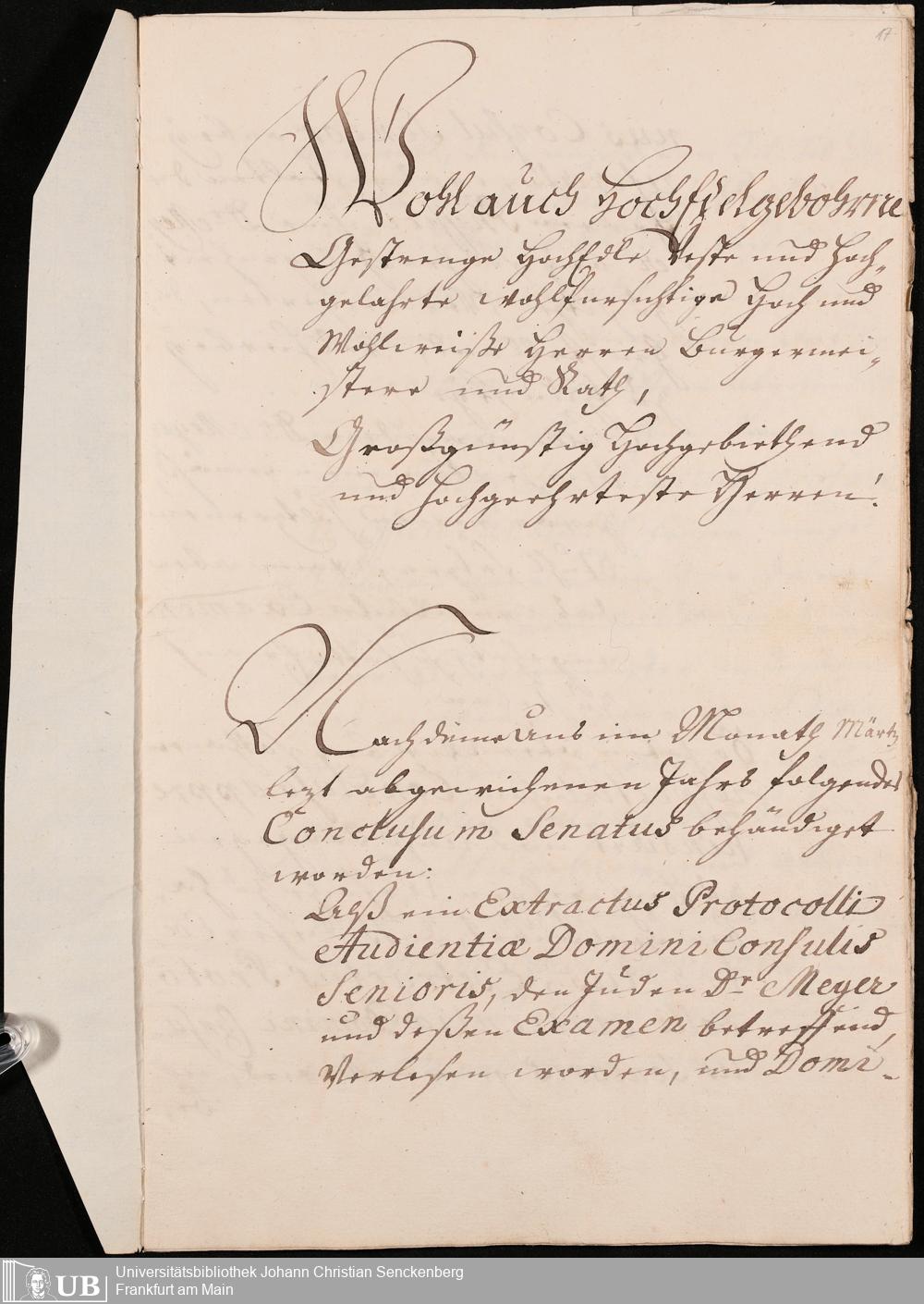 Na 31 Nachlass Johann Christian Senckenberg, 302 - Eingaben an den Senat und Beschlüsse über die Zulassung von Judenärzten in Frankfurt