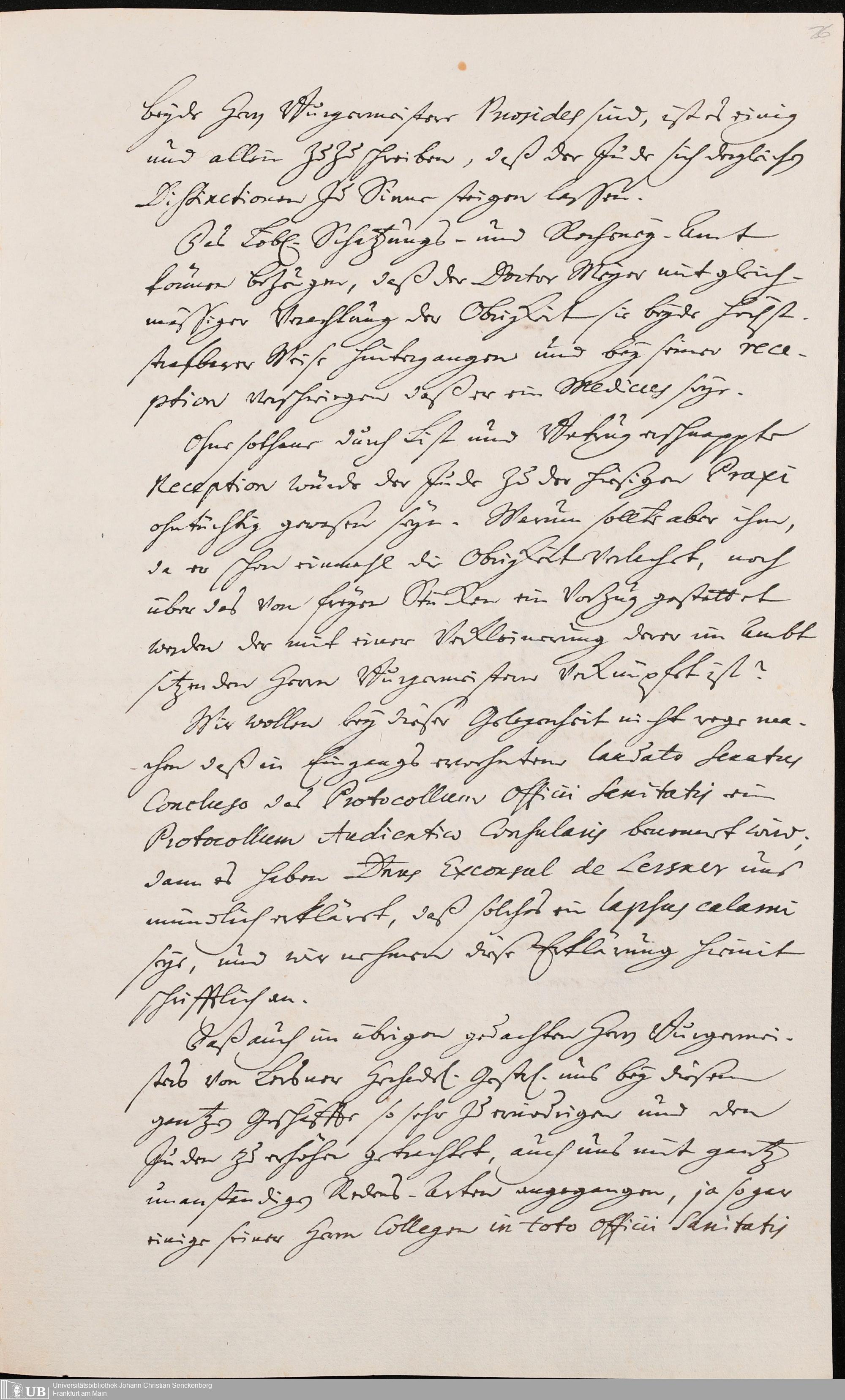 Na 31 Nachlass Johann Christian Senckenberg, 302 - Eingaben an den Senat und Beschlüsse über die Zulassung von Judenärzten in Frankfurt