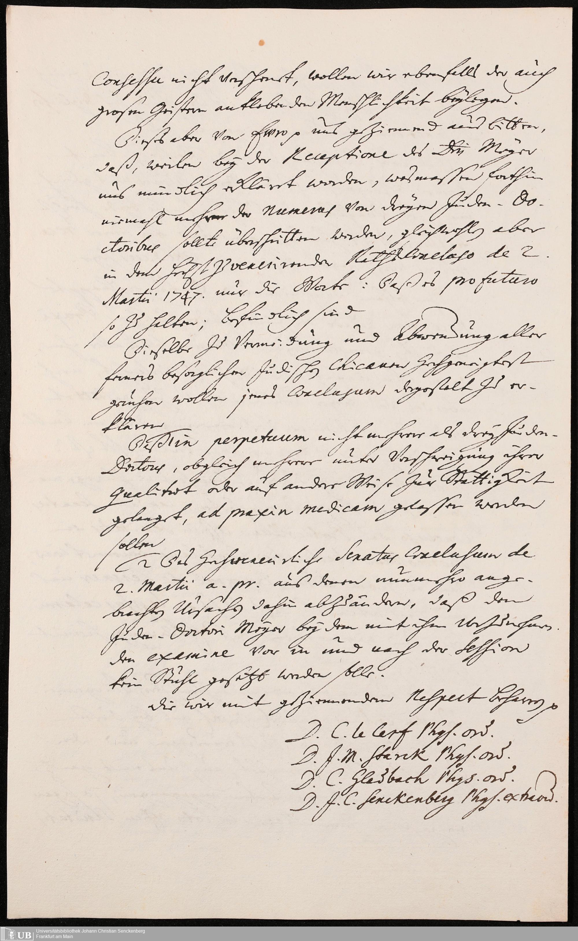Na 31 Nachlass Johann Christian Senckenberg, 302 - Eingaben an den Senat und Beschlüsse über die Zulassung von Judenärzten in Frankfurt