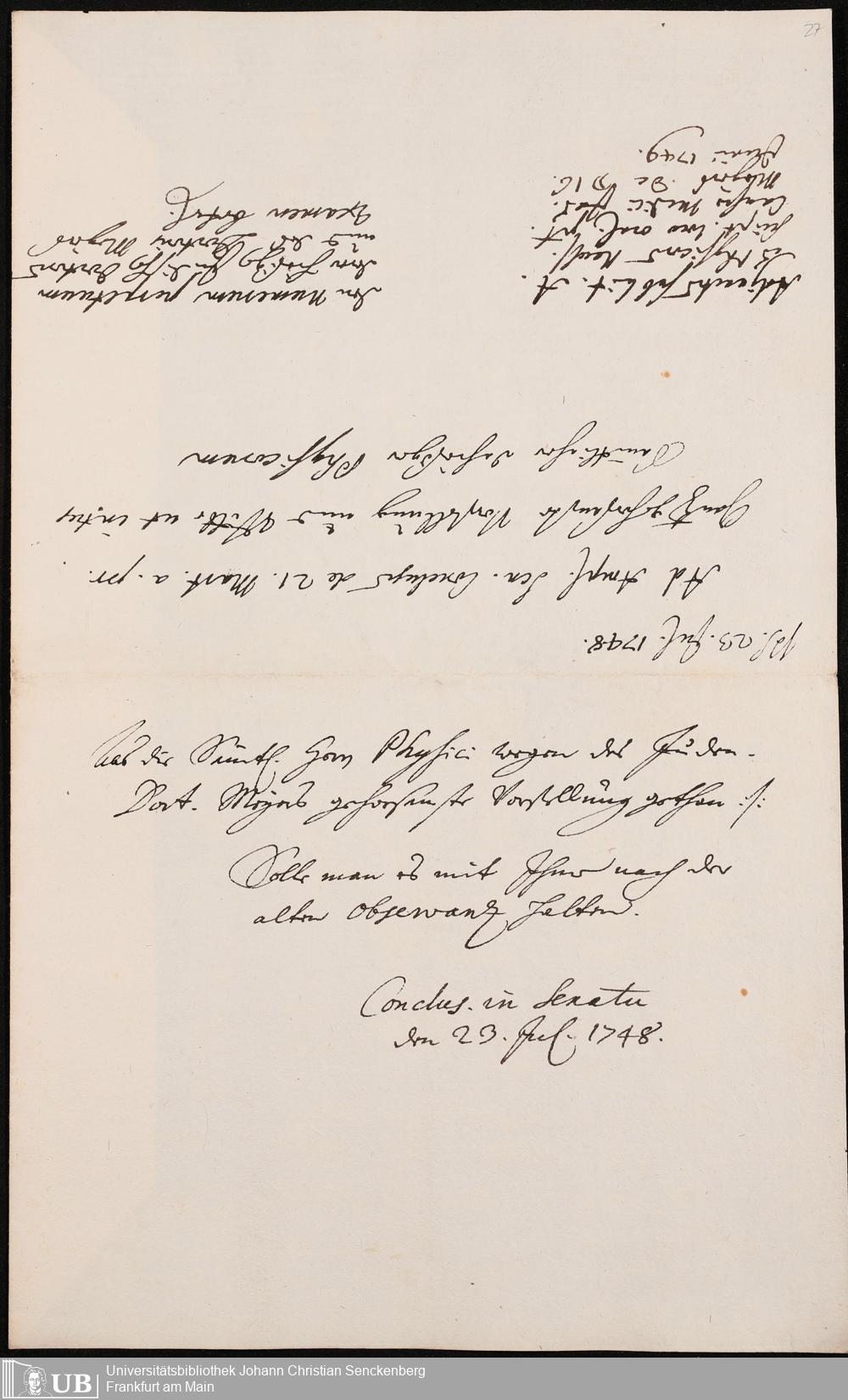 Na 31 Nachlass Johann Christian Senckenberg, 302 - Eingaben an den Senat und Beschlüsse über die Zulassung von Judenärzten in Frankfurt