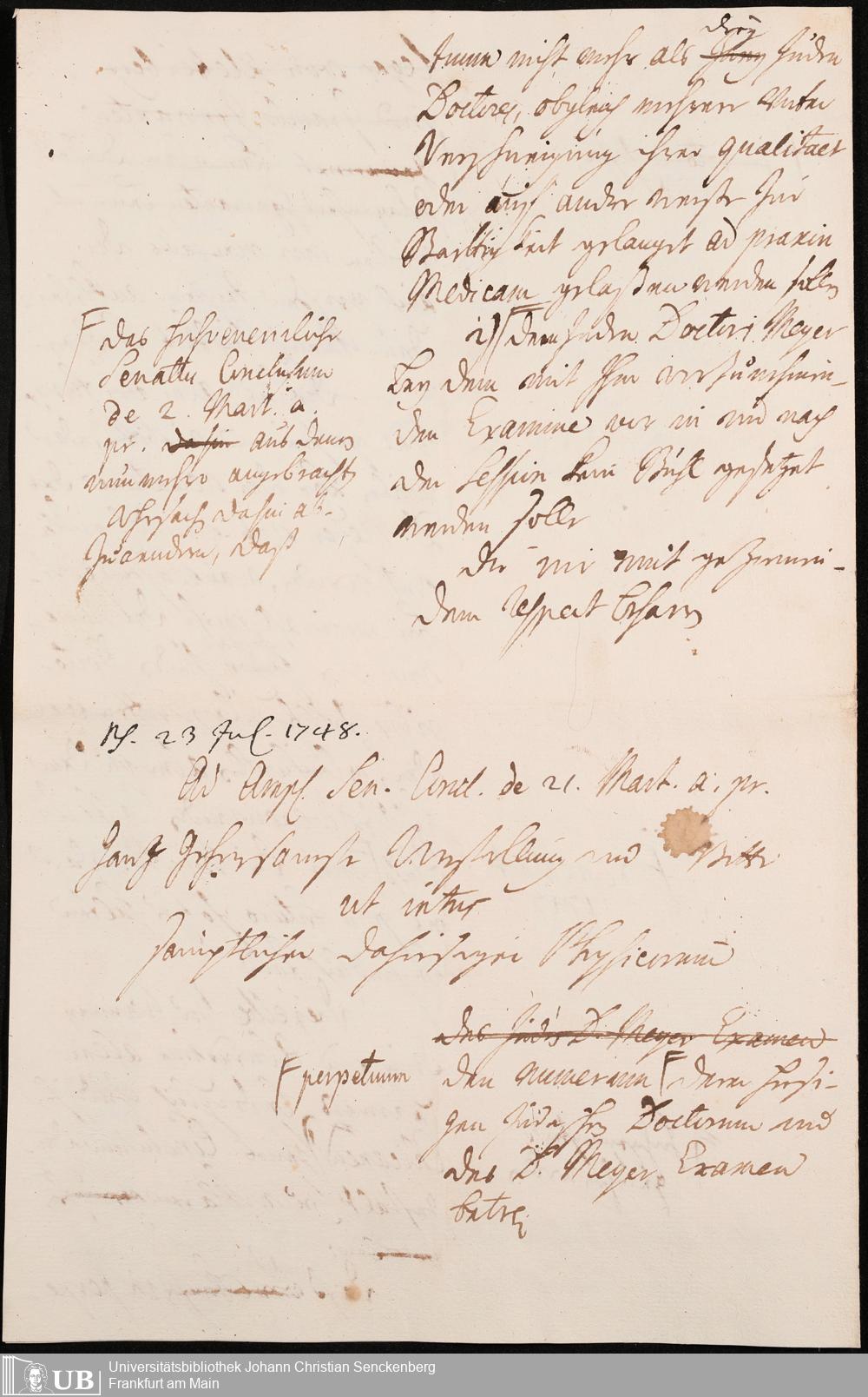 Na 31 Nachlass Johann Christian Senckenberg, 302 - Eingaben an den Senat und Beschlüsse über die Zulassung von Judenärzten in Frankfurt