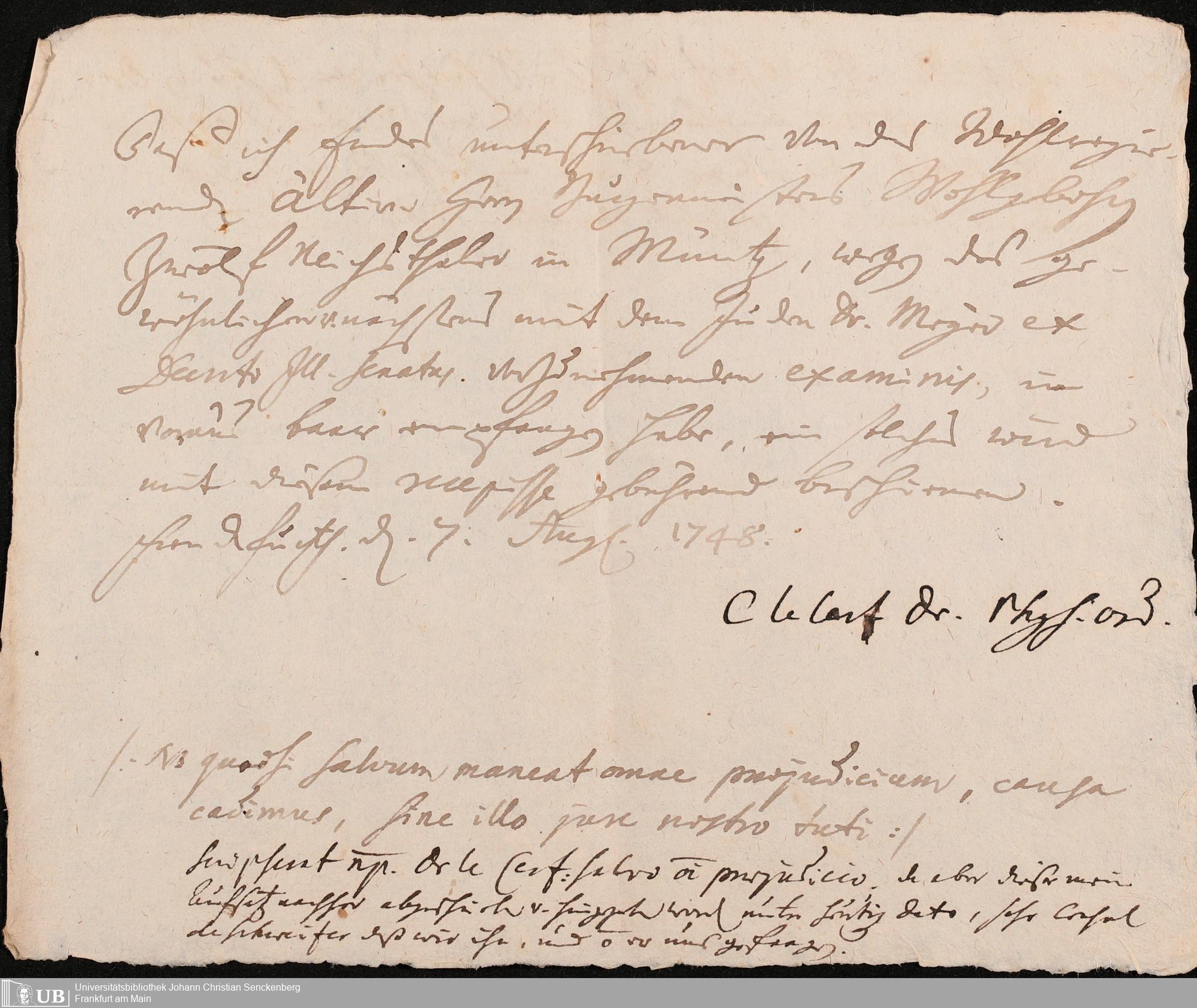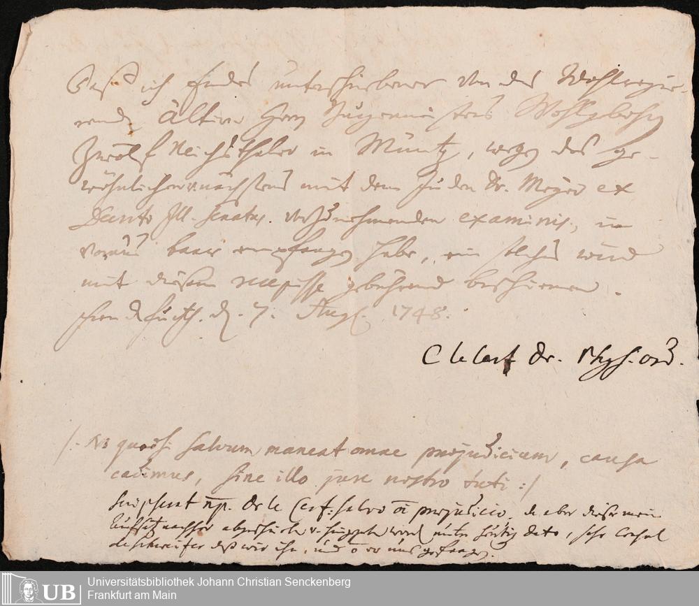Na 31 Nachlass Johann Christian Senckenberg, 302 - Eingaben an den Senat und Beschlüsse über die Zulassung von Judenärzten in Frankfurt
