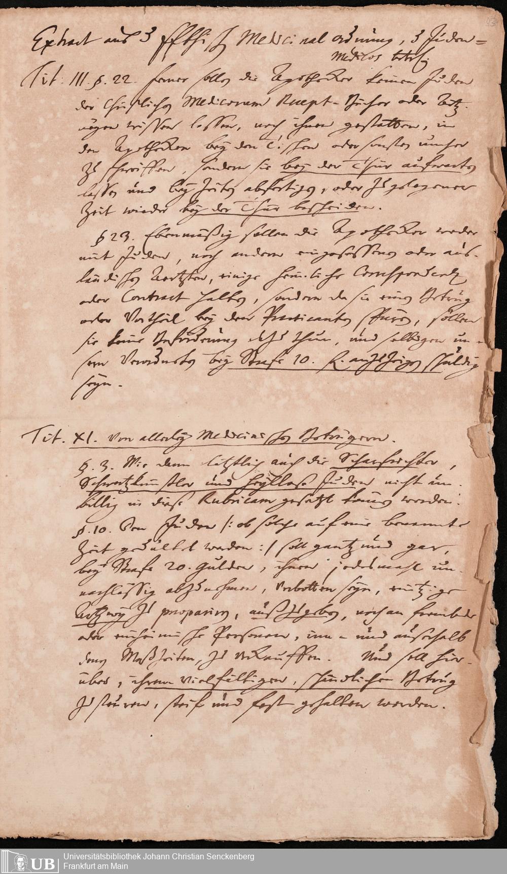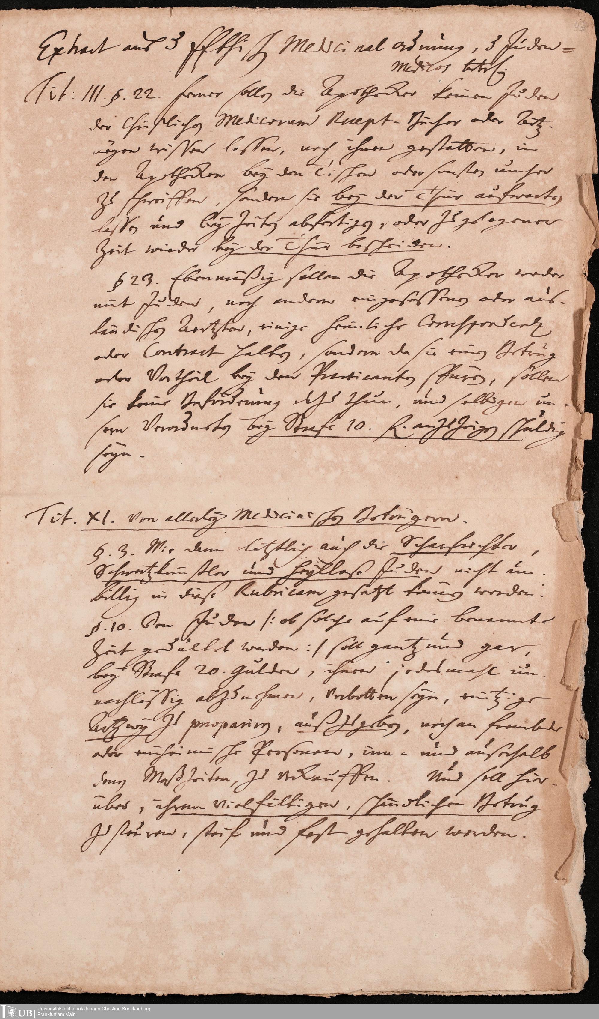 Na 31 Nachlass Johann Christian Senckenberg, 302 - Eingaben an den Senat und Beschlüsse über die Zulassung von Judenärzten in Frankfurt