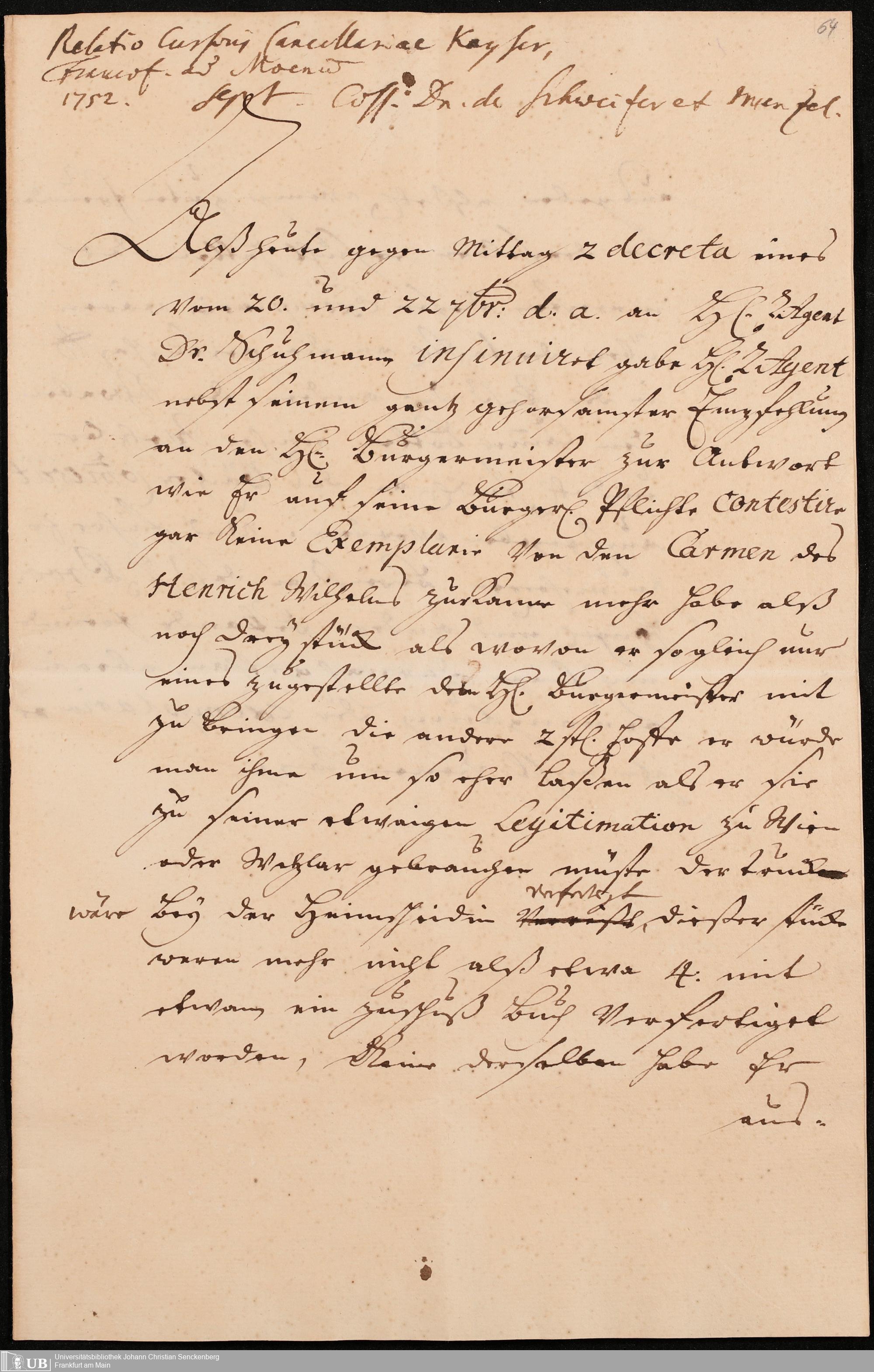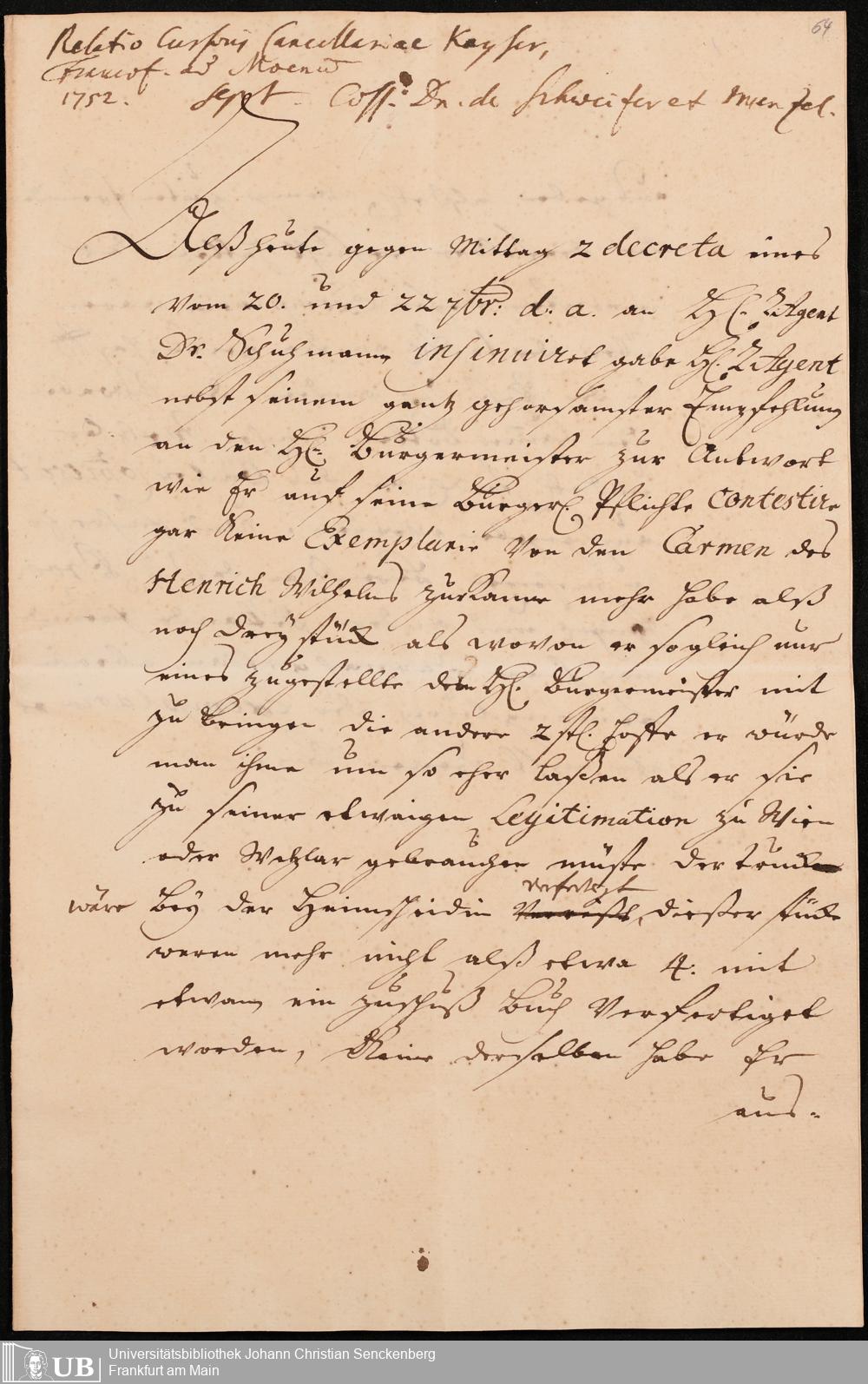 Na 31 Nachlass Johann Christian Senckenberg, 302 - Eingaben an den Senat und Beschlüsse über die Zulassung von Judenärzten in Frankfurt