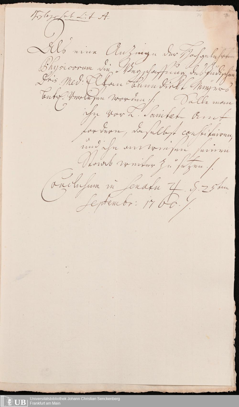 Na 31 Nachlass Johann Christian Senckenberg, 302 - Eingaben an den Senat und Beschlüsse über die Zulassung von Judenärzten in Frankfurt