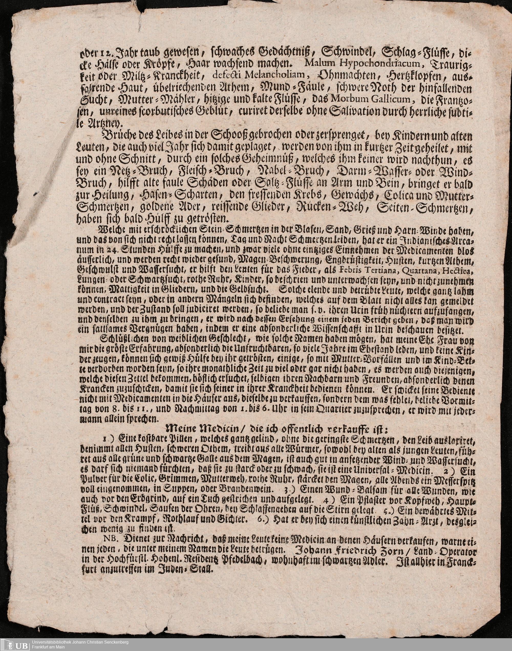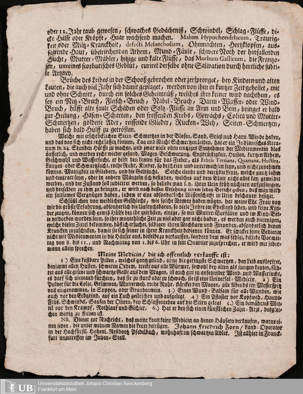 Na 31 Nachlass Johann Christian Senckenberg, 305 - Zum Verkauf fremder Medikamente