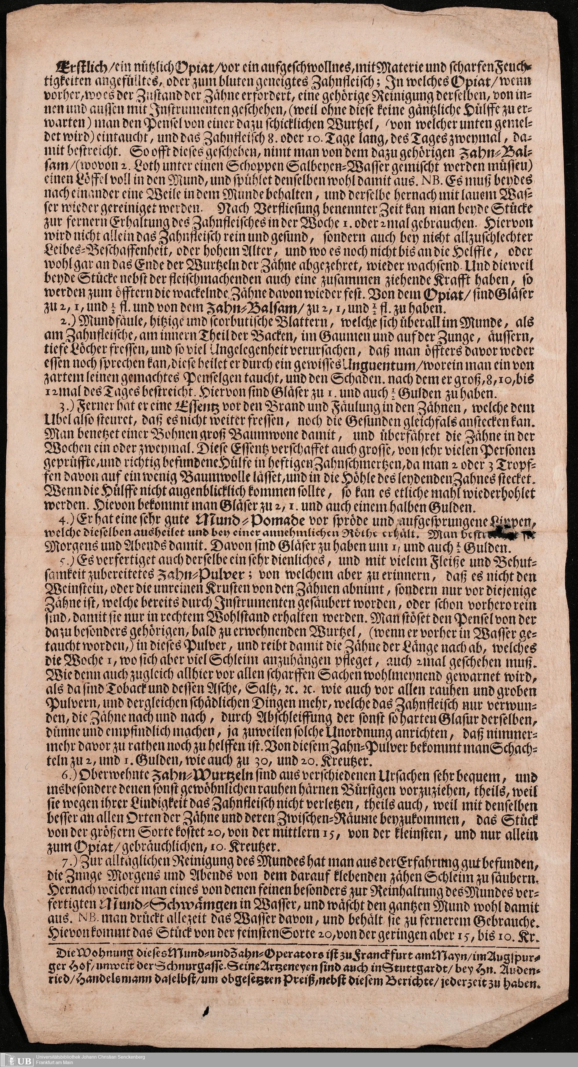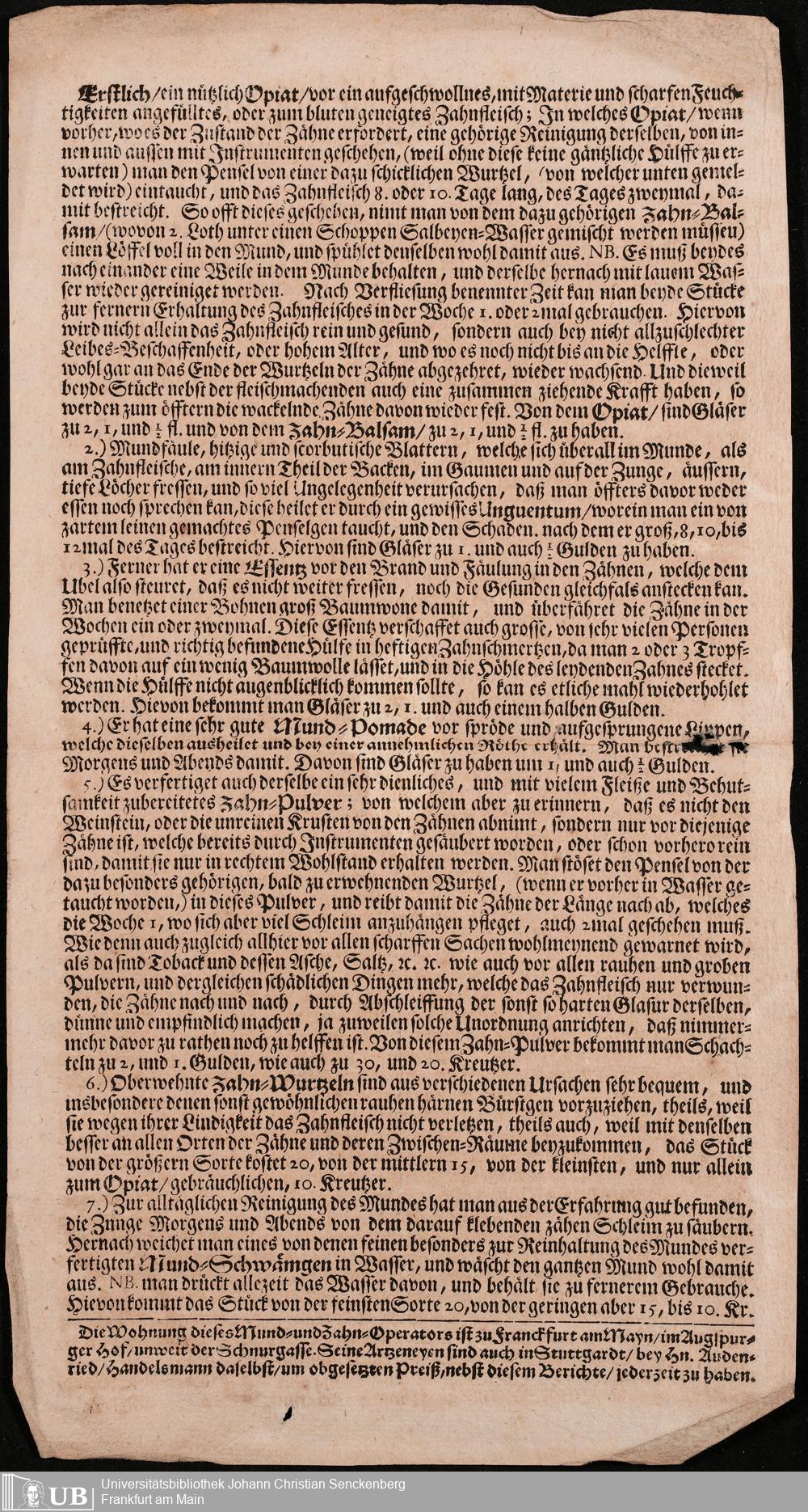 Na 31 Nachlass Johann Christian Senckenberg, 305 - Zum Verkauf fremder Medikamente