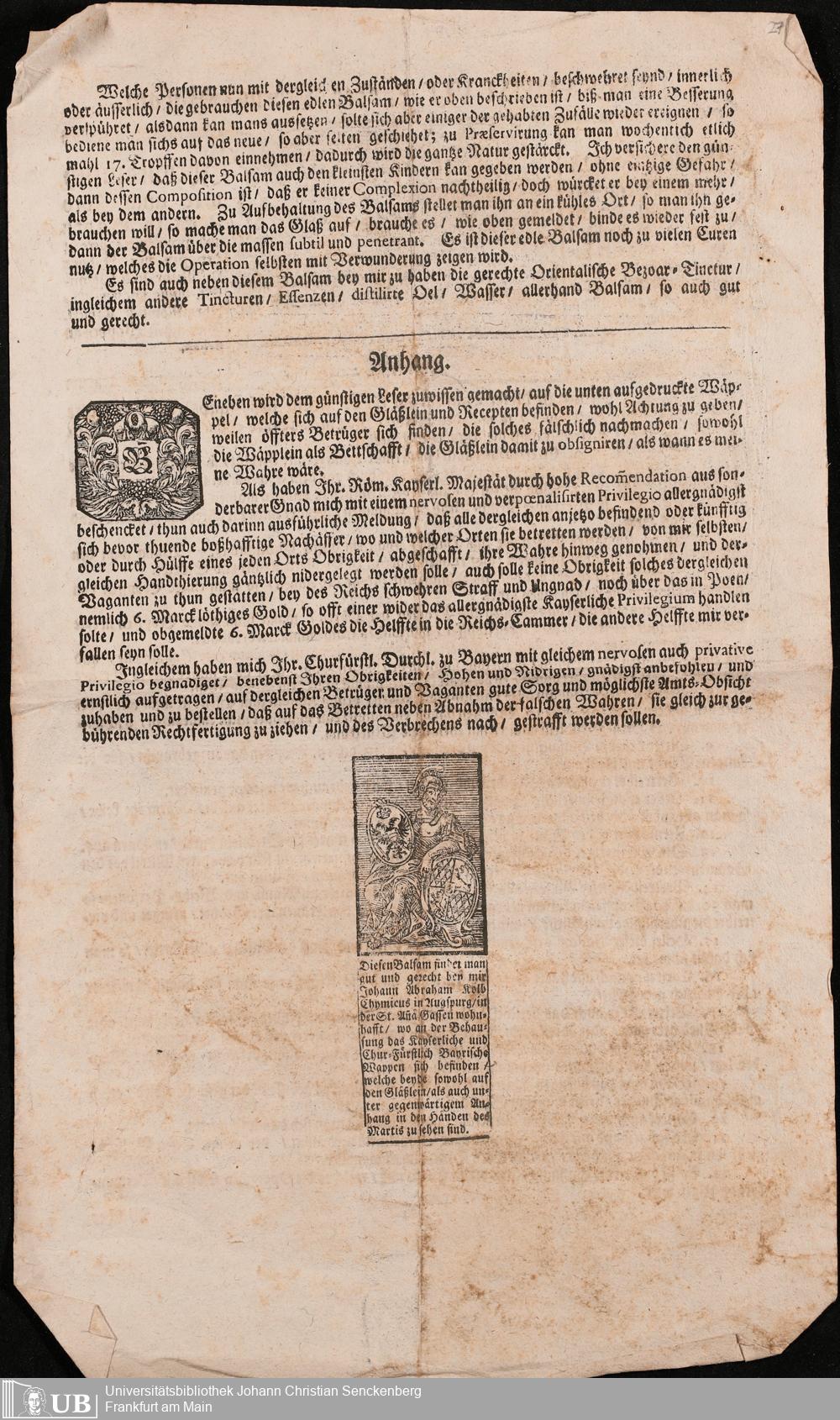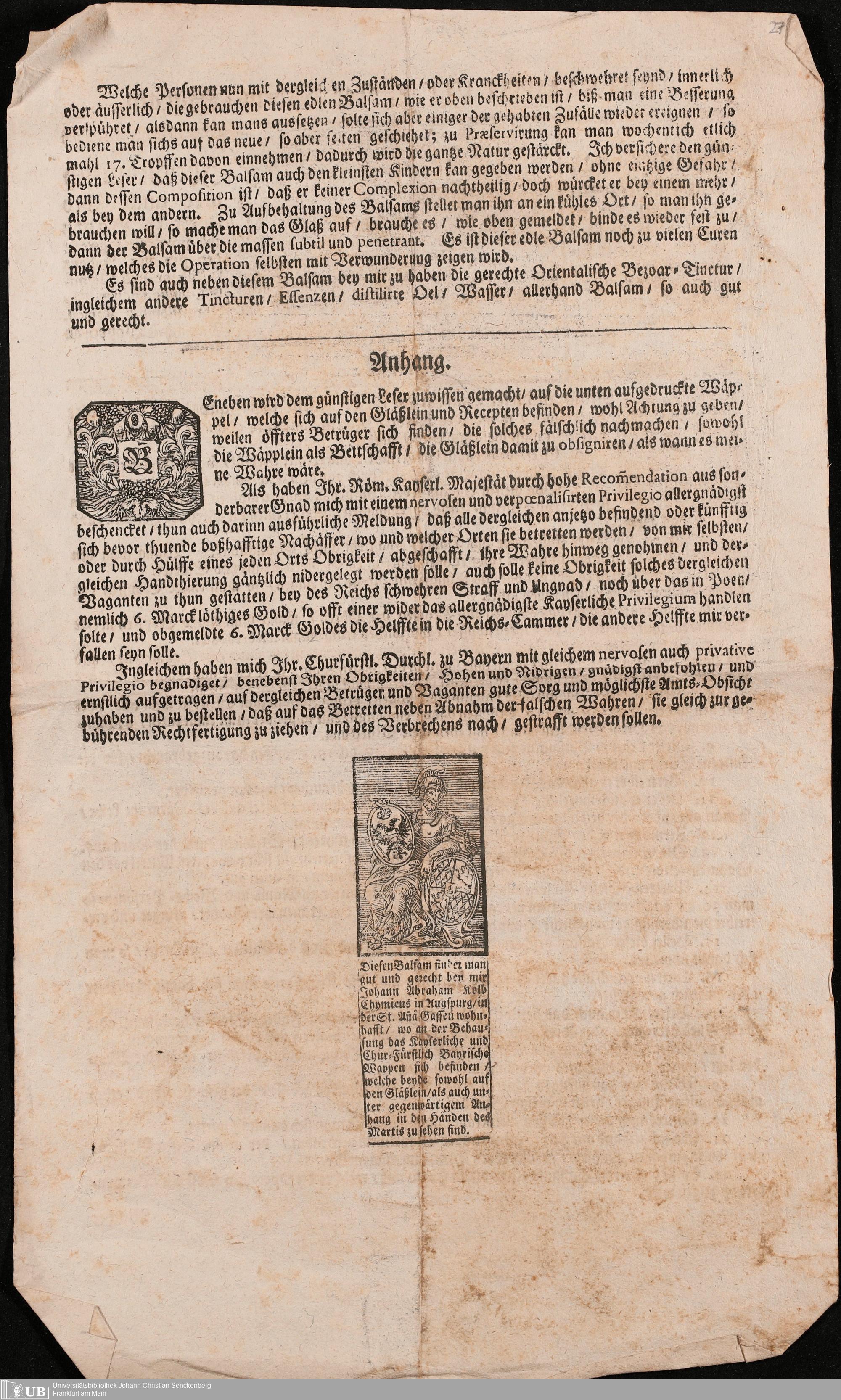 Na 31 Nachlass Johann Christian Senckenberg, 305 - Zum Verkauf fremder Medikamente