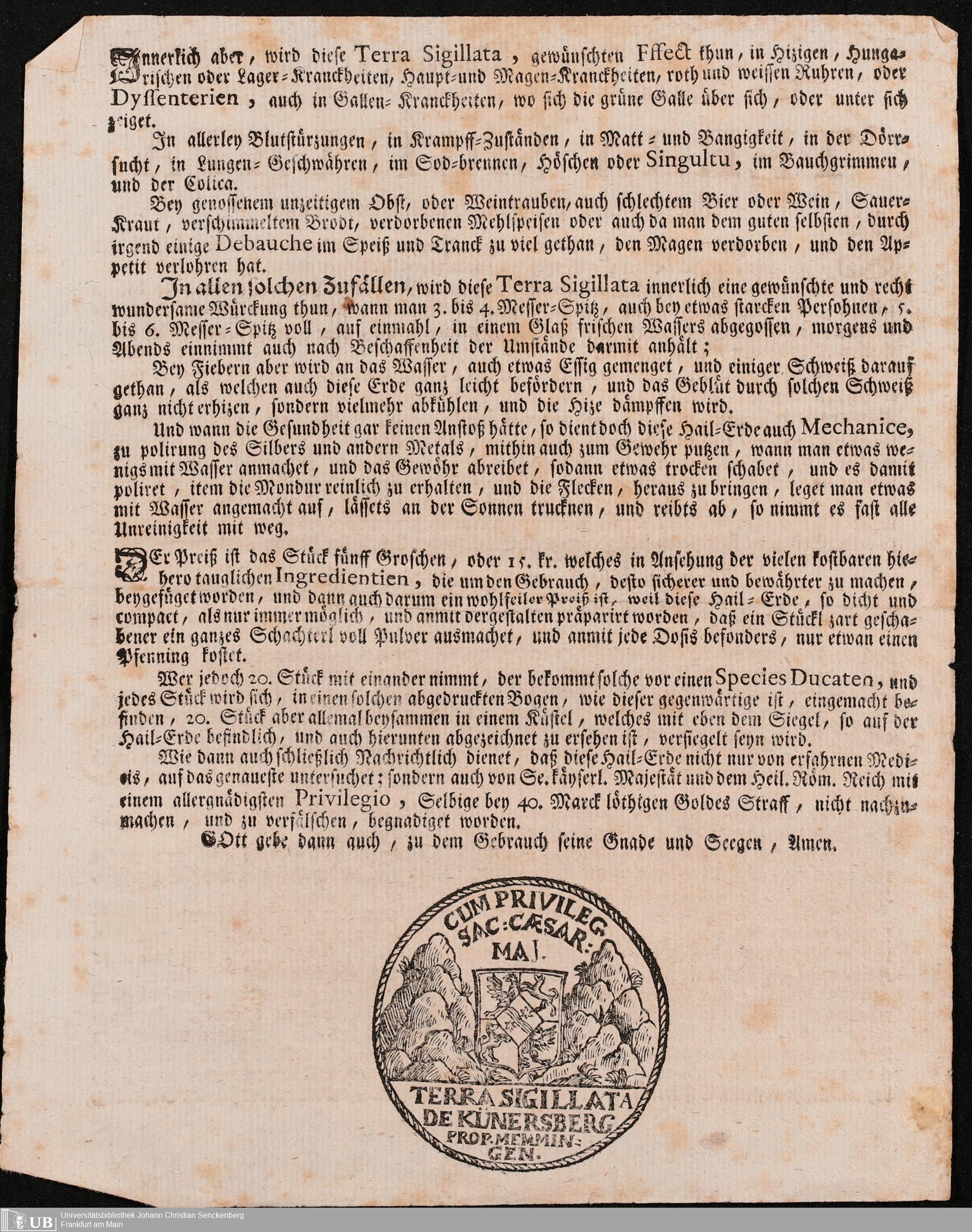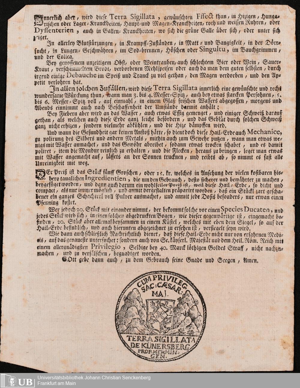 Na 31 Nachlass Johann Christian Senckenberg, 305 - Zum Verkauf fremder Medikamente