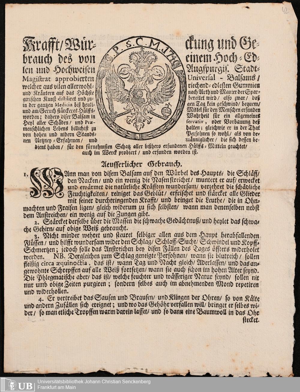 Na 31 Nachlass Johann Christian Senckenberg, 305 - Zum Verkauf fremder Medikamente
