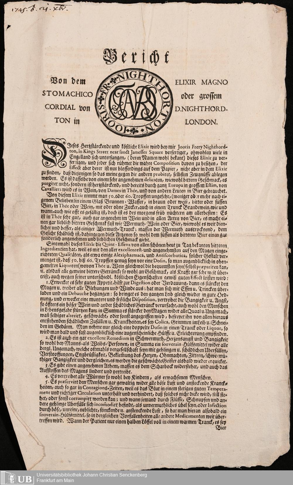 Na 31 Nachlass Johann Christian Senckenberg, 305 - Zum Verkauf fremder Medikamente