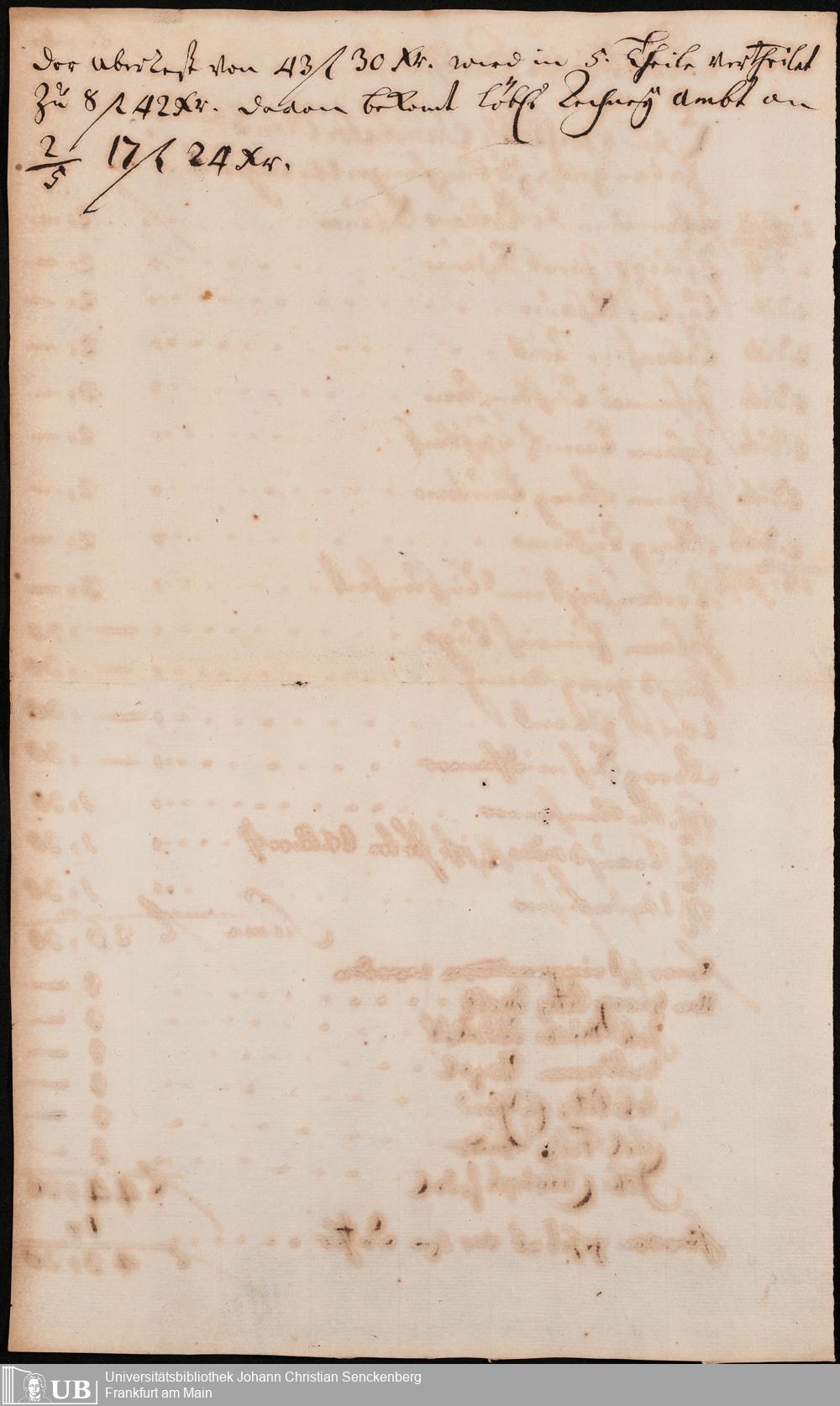 Na 31 Nachlass Johann Christian Senckenberg, 306 - Aufrechnungen der an das Sanitätsamt zu zahlenden Beträge von Händlern