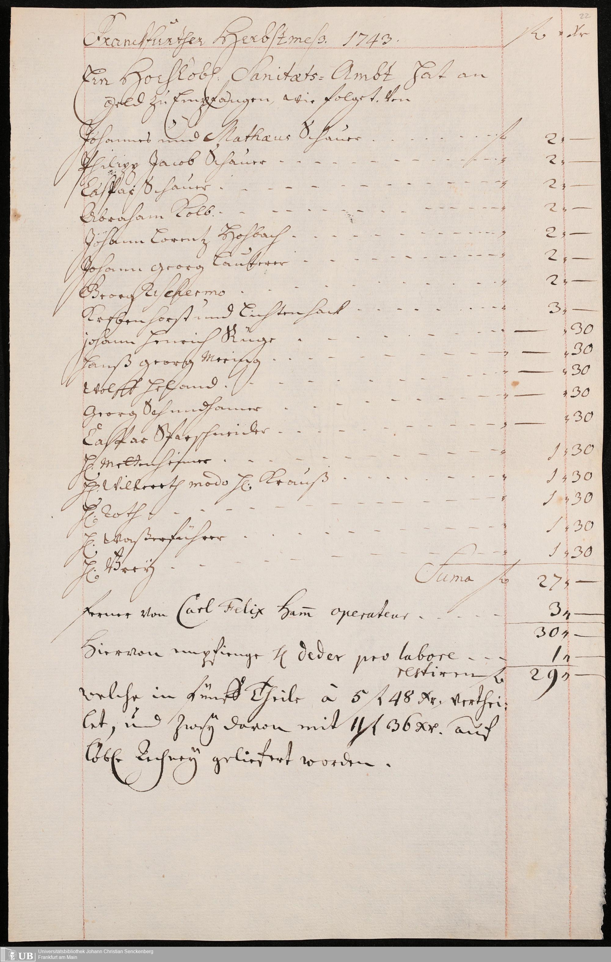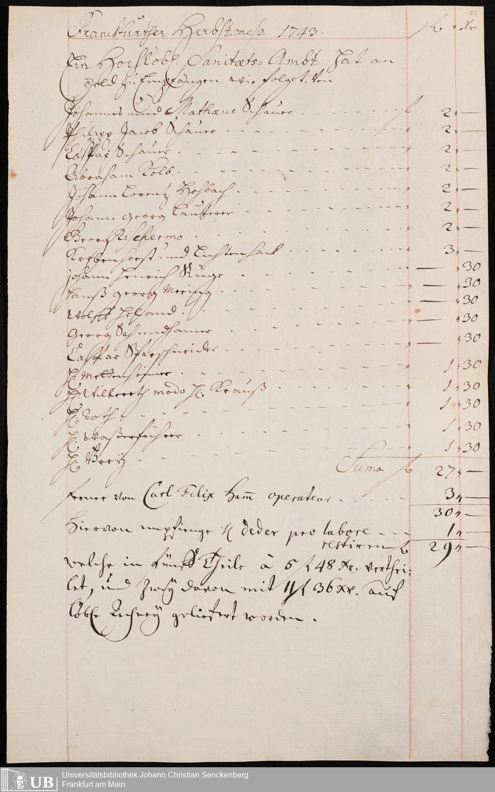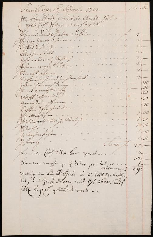 Na 31 Nachlass Johann Christian Senckenberg, 306 - Aufrechnungen der an das Sanitätsamt zu zahlenden Beträge von Händlern