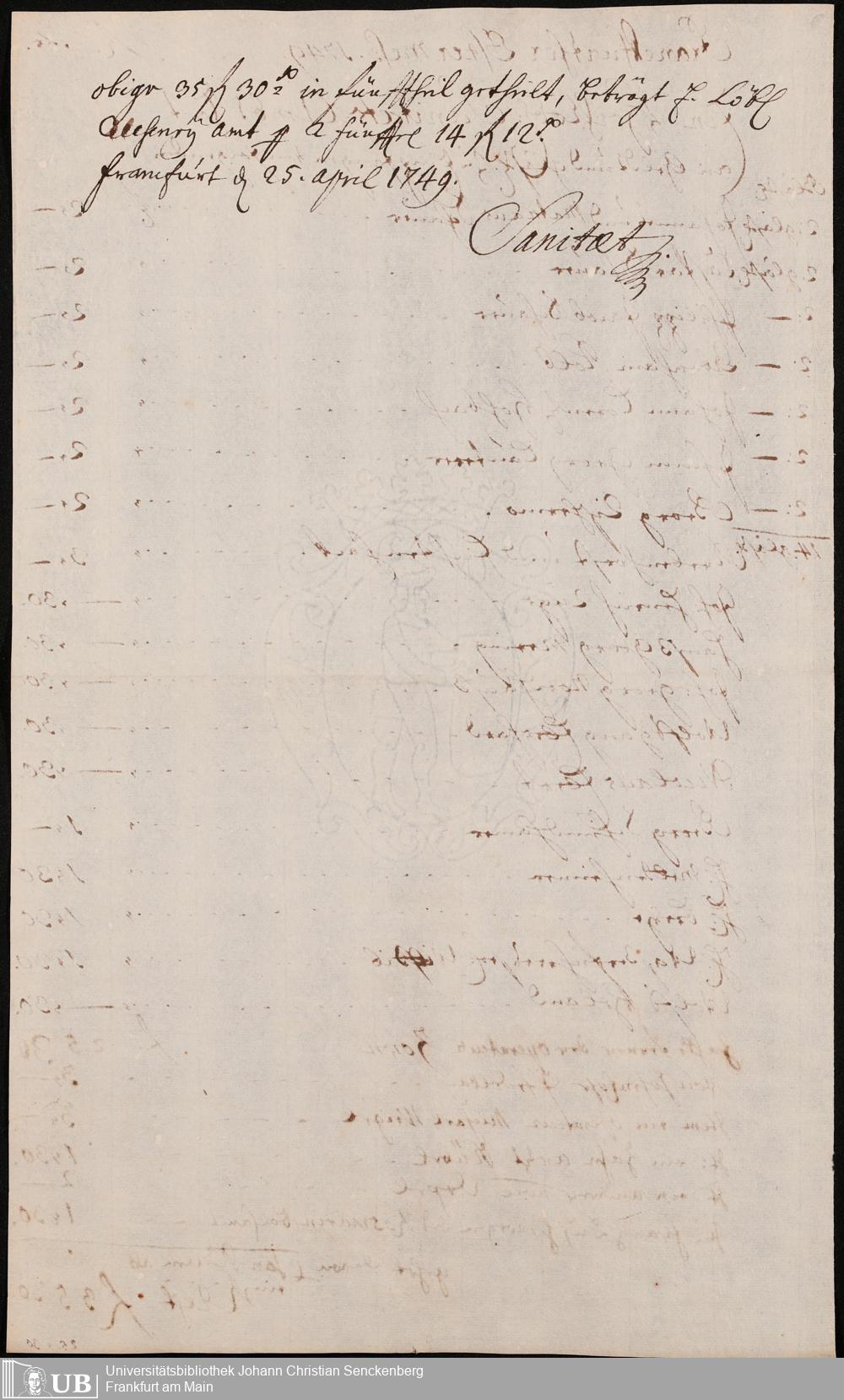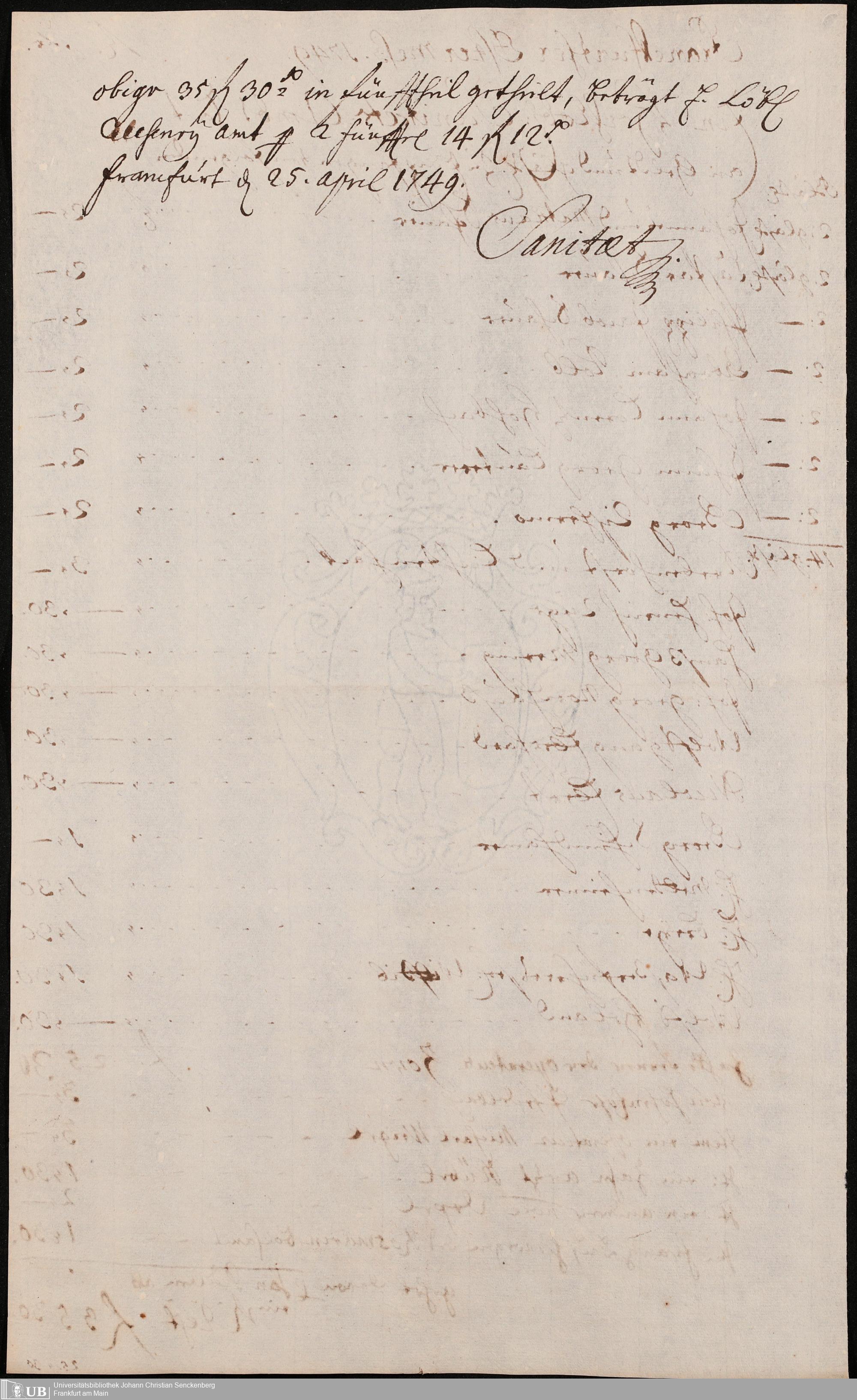 Na 31 Nachlass Johann Christian Senckenberg, 306 - Aufrechnungen der an das Sanitätsamt zu zahlenden Beträge von Händlern
