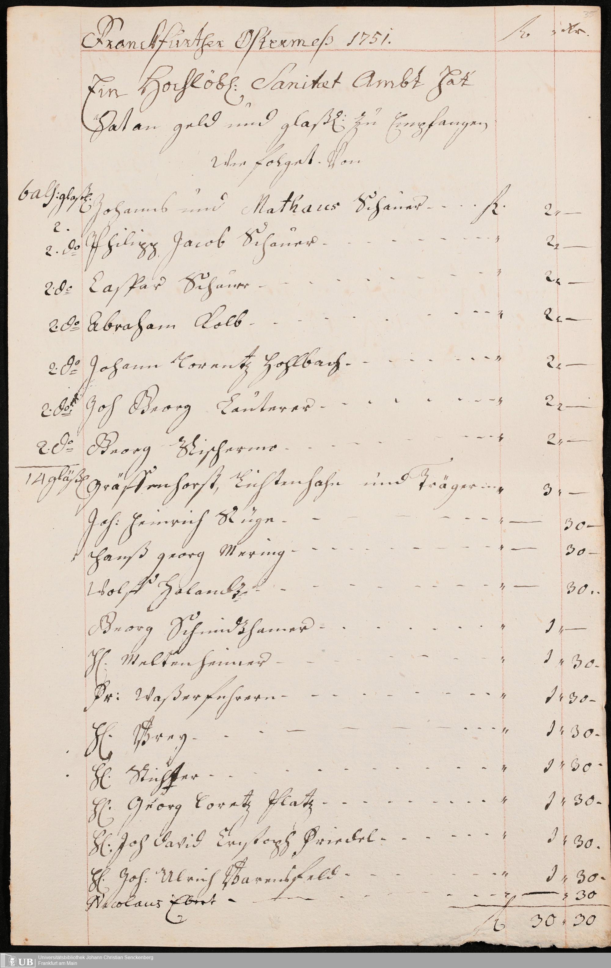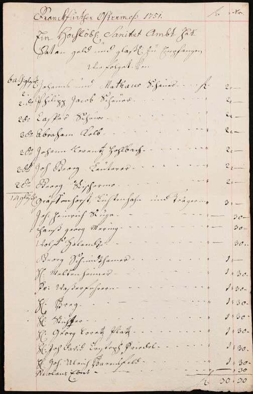 Na 31 Nachlass Johann Christian Senckenberg, 306 - Aufrechnungen der an das Sanitätsamt zu zahlenden Beträge von Händlern