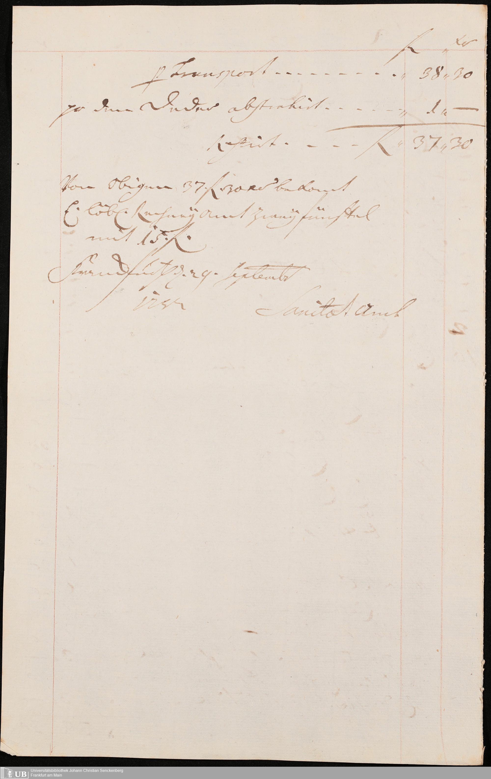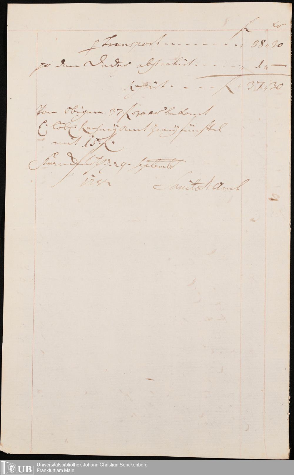 Na 31 Nachlass Johann Christian Senckenberg, 306 - Aufrechnungen der an das Sanitätsamt zu zahlenden Beträge von Händlern