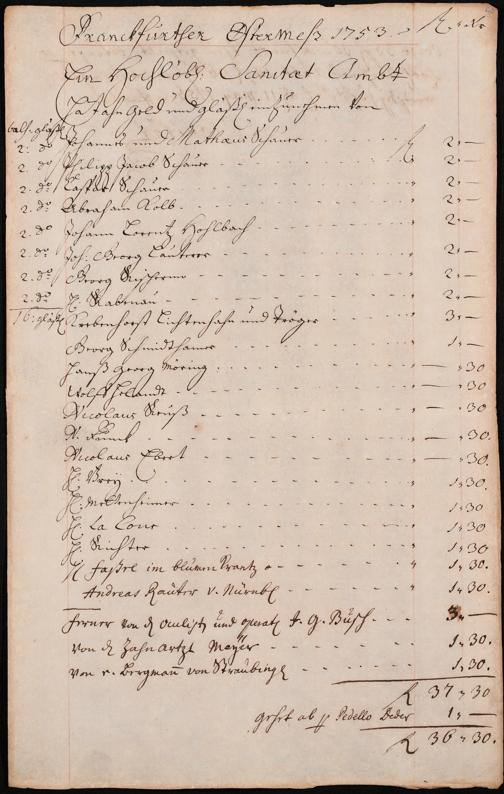 Na 31 Nachlass Johann Christian Senckenberg, 306 - Aufrechnungen der an das Sanitätsamt zu zahlenden Beträge von Händlern