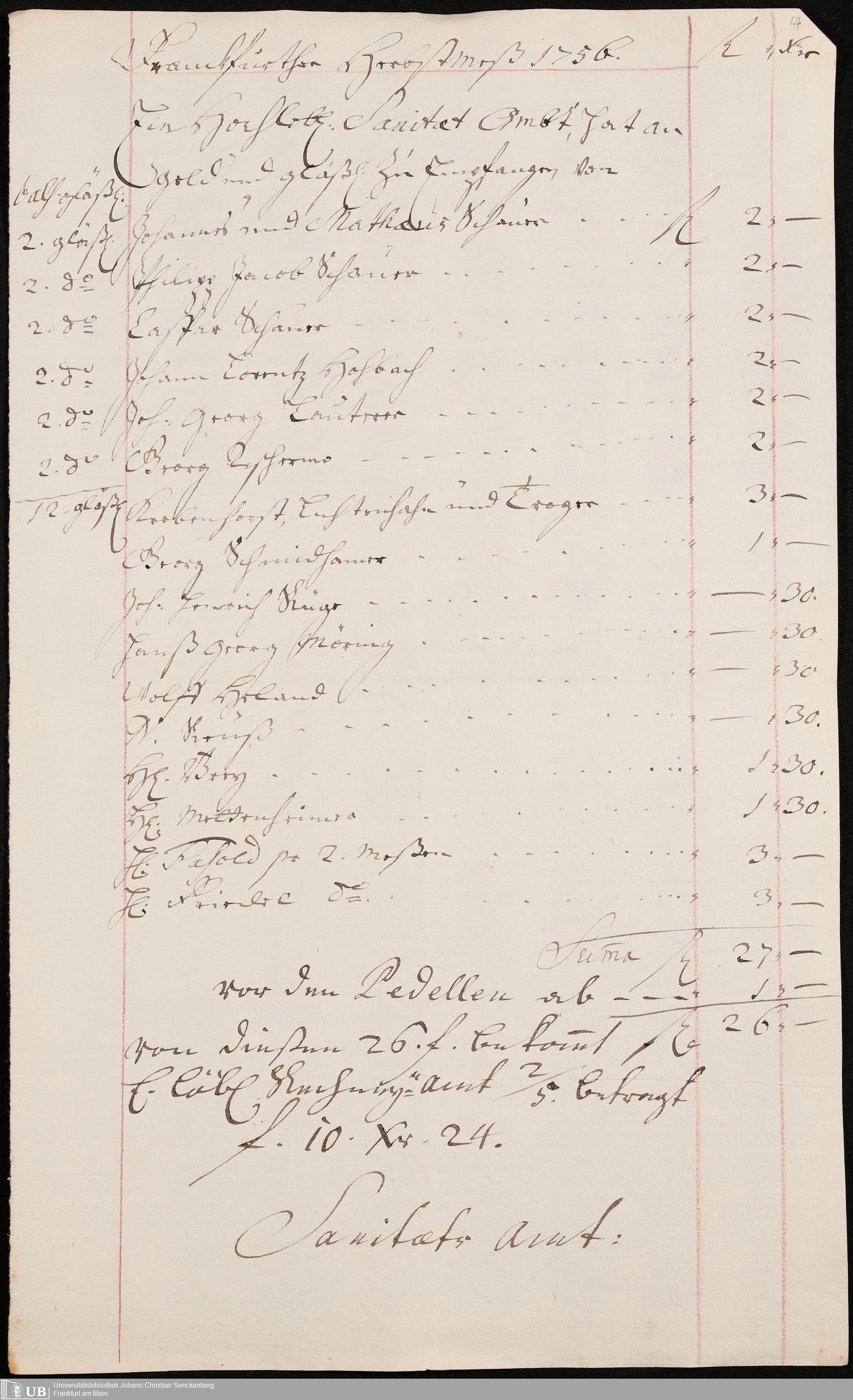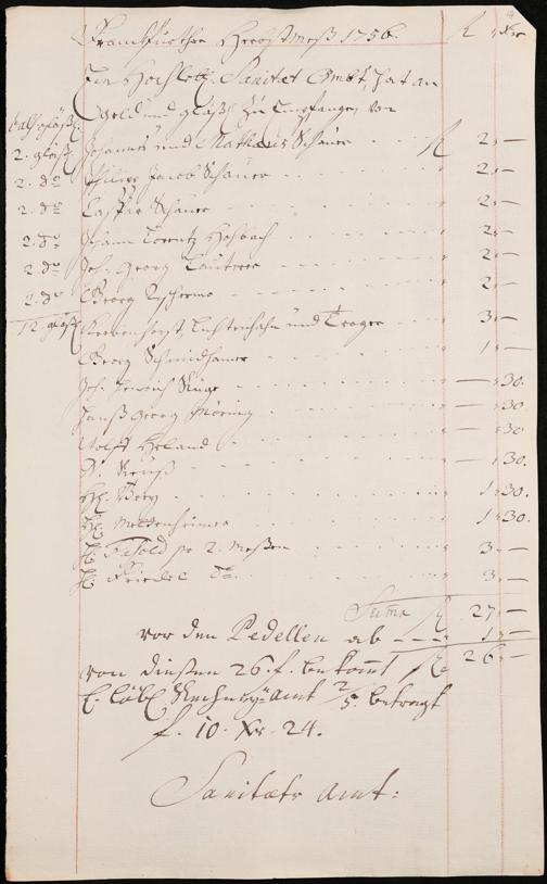 Na 31 Nachlass Johann Christian Senckenberg, 306 - Aufrechnungen der an das Sanitätsamt zu zahlenden Beträge von Händlern