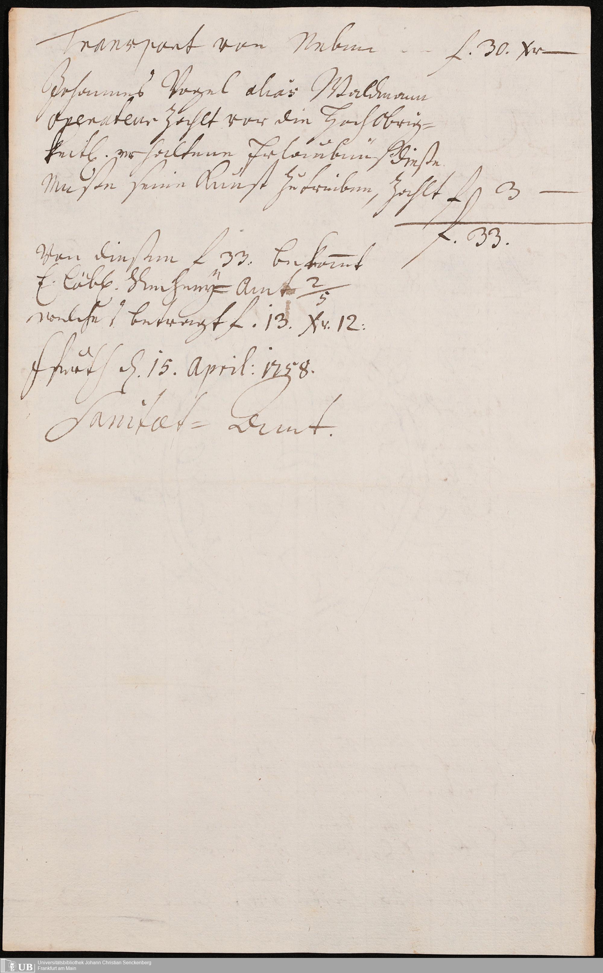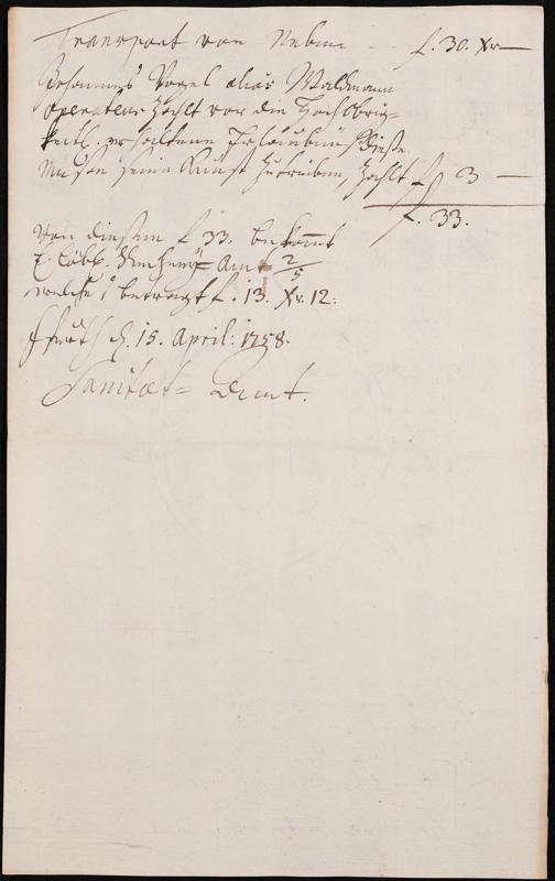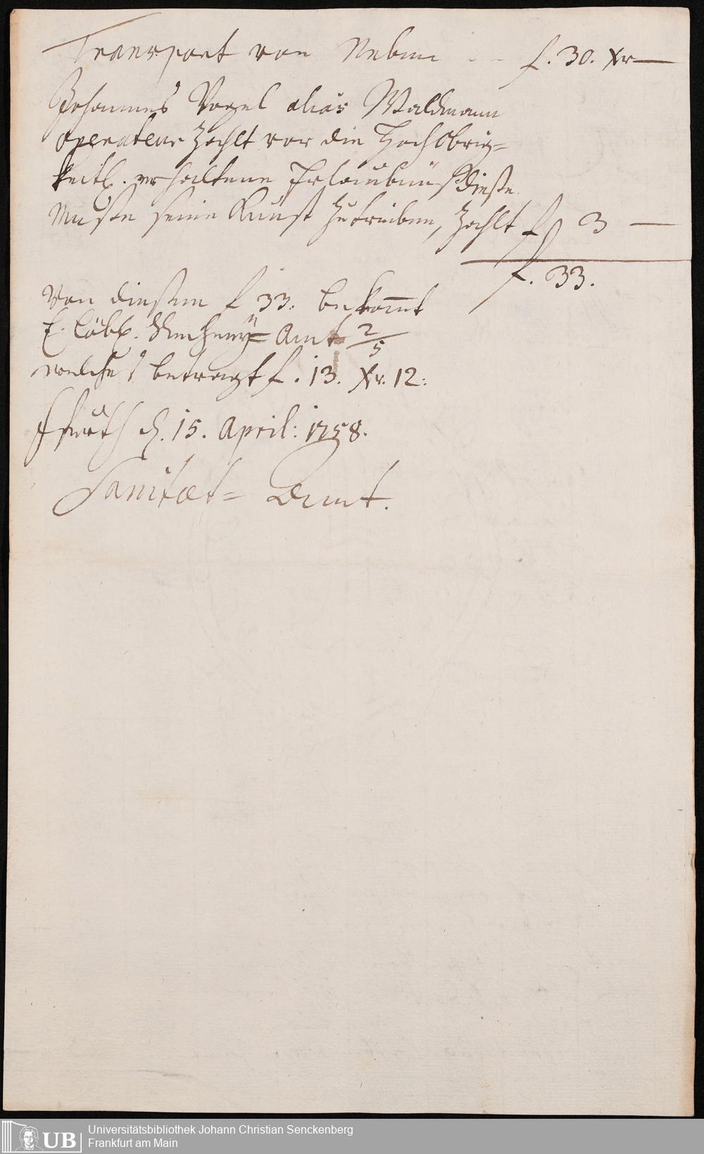 Na 31 Nachlass Johann Christian Senckenberg, 306 - Aufrechnungen der an das Sanitätsamt zu zahlenden Beträge von Händlern