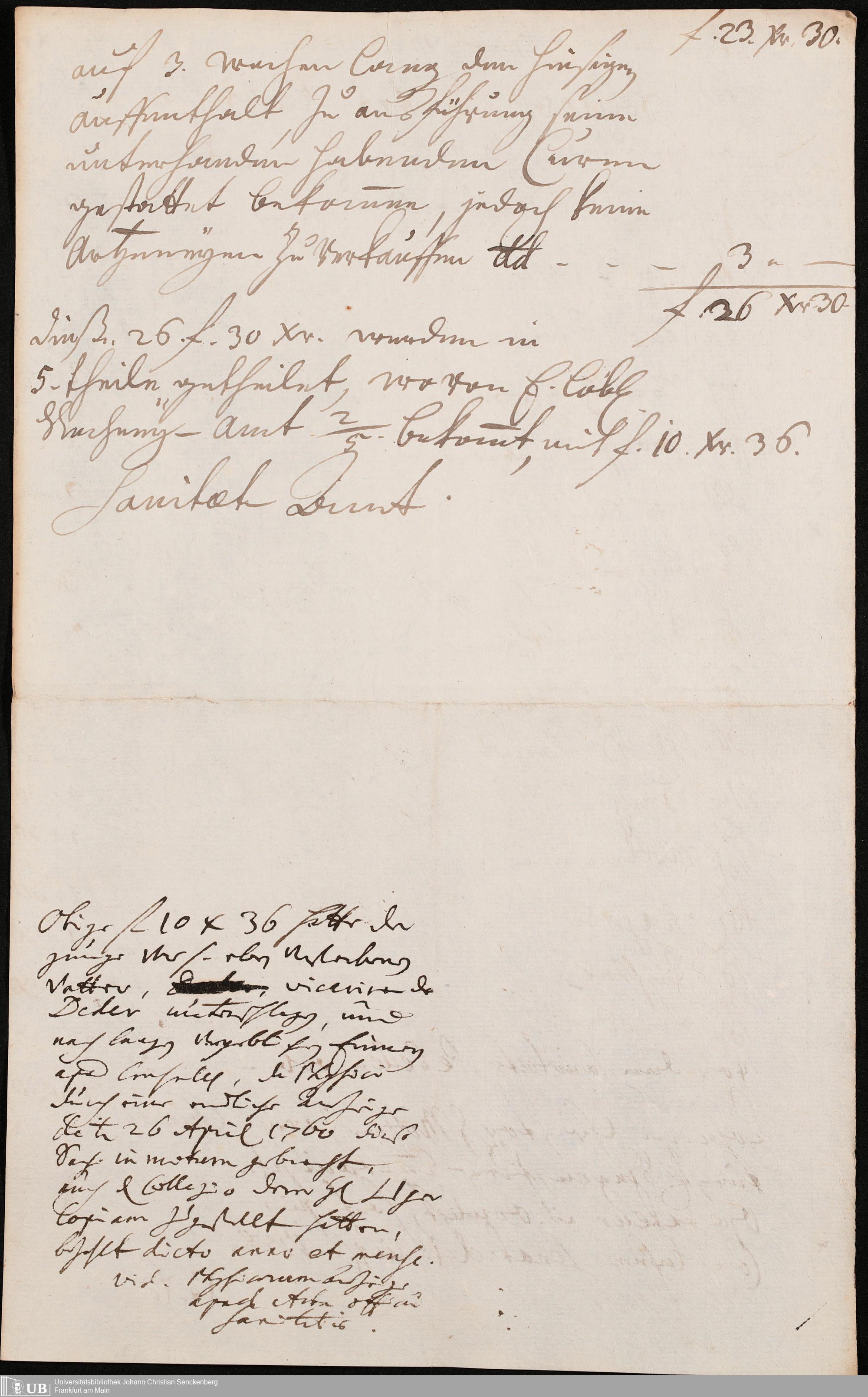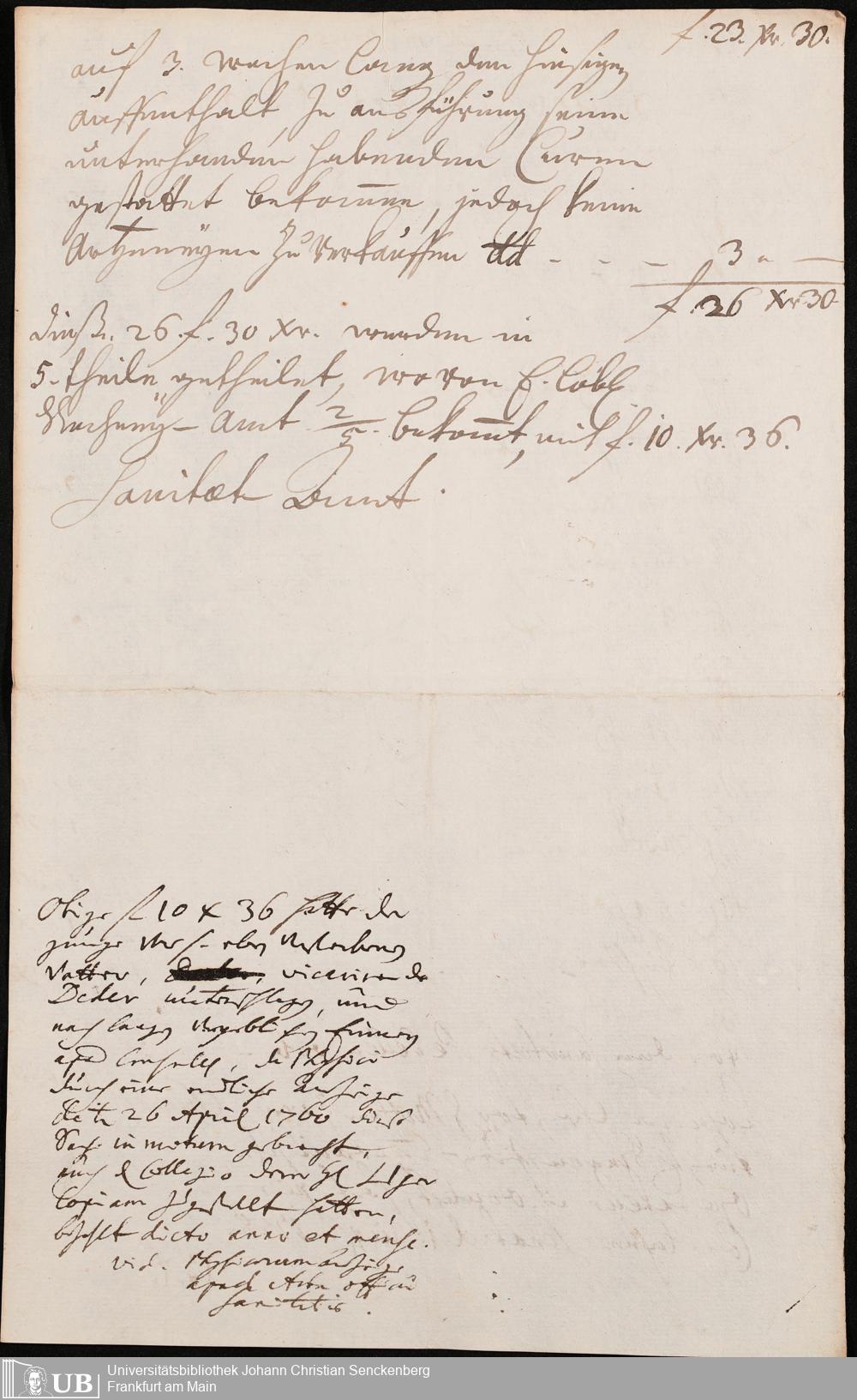 Na 31 Nachlass Johann Christian Senckenberg, 306 - Aufrechnungen der an das Sanitätsamt zu zahlenden Beträge von Händlern