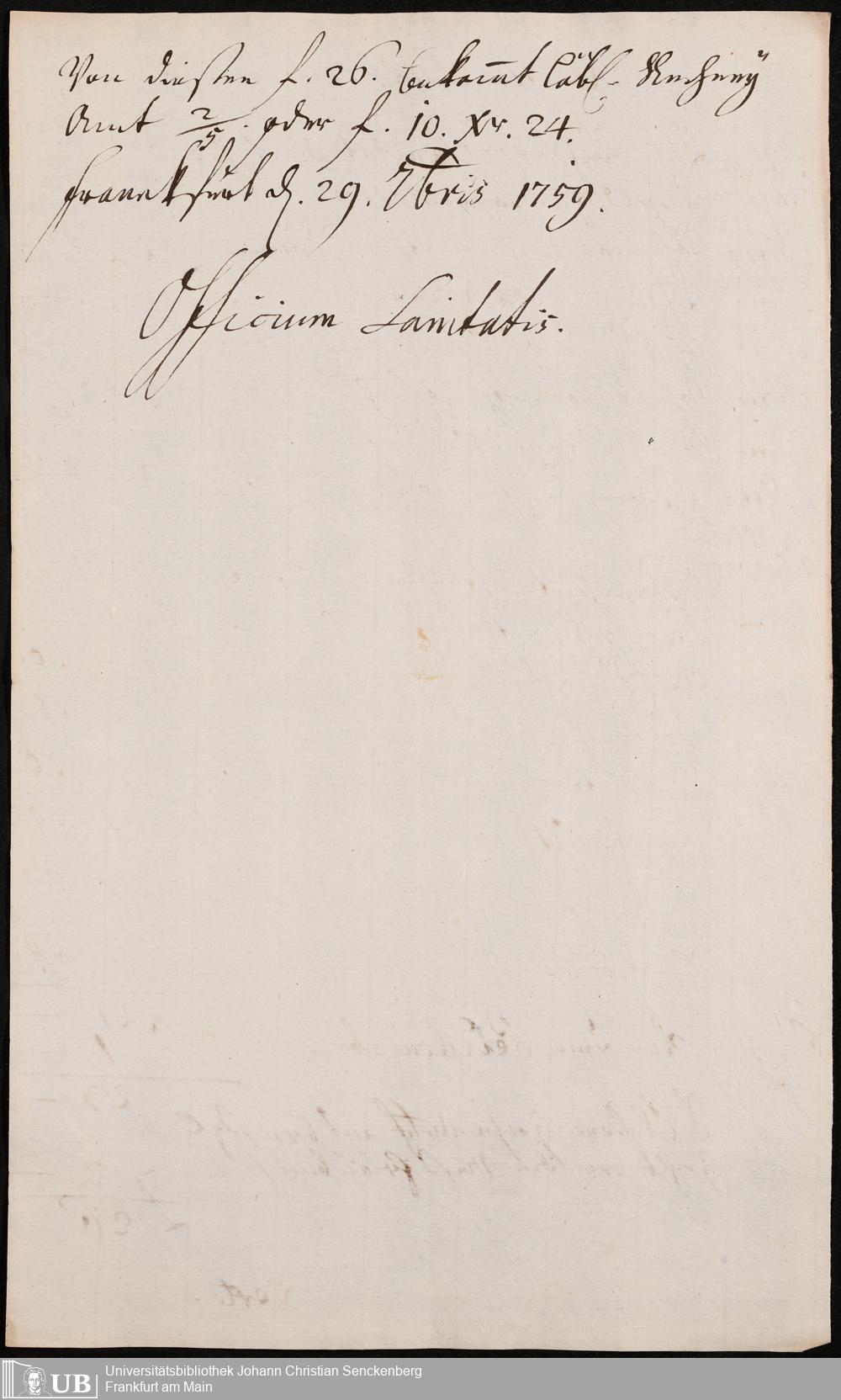 Na 31 Nachlass Johann Christian Senckenberg, 306 - Aufrechnungen der an das Sanitätsamt zu zahlenden Beträge von Händlern
