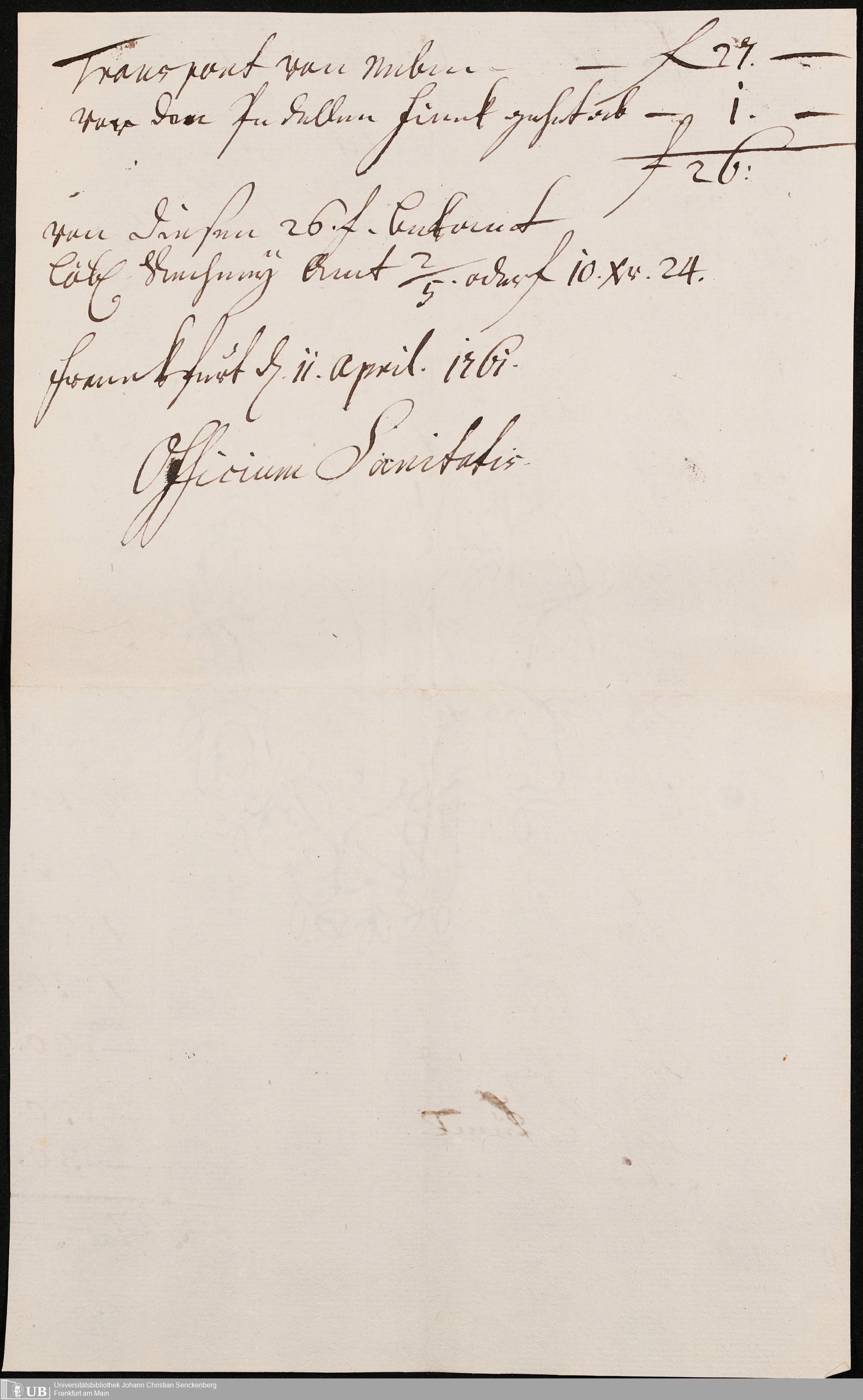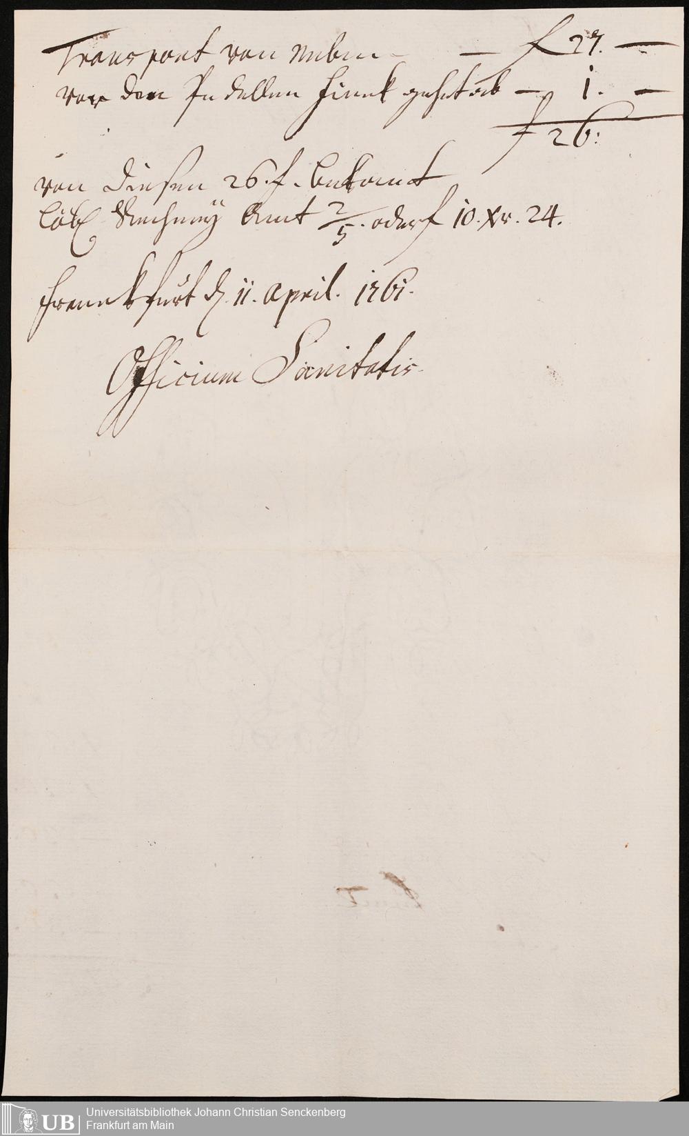 Na 31 Nachlass Johann Christian Senckenberg, 306 - Aufrechnungen der an das Sanitätsamt zu zahlenden Beträge von Händlern