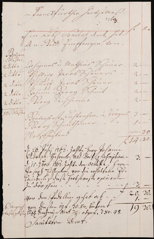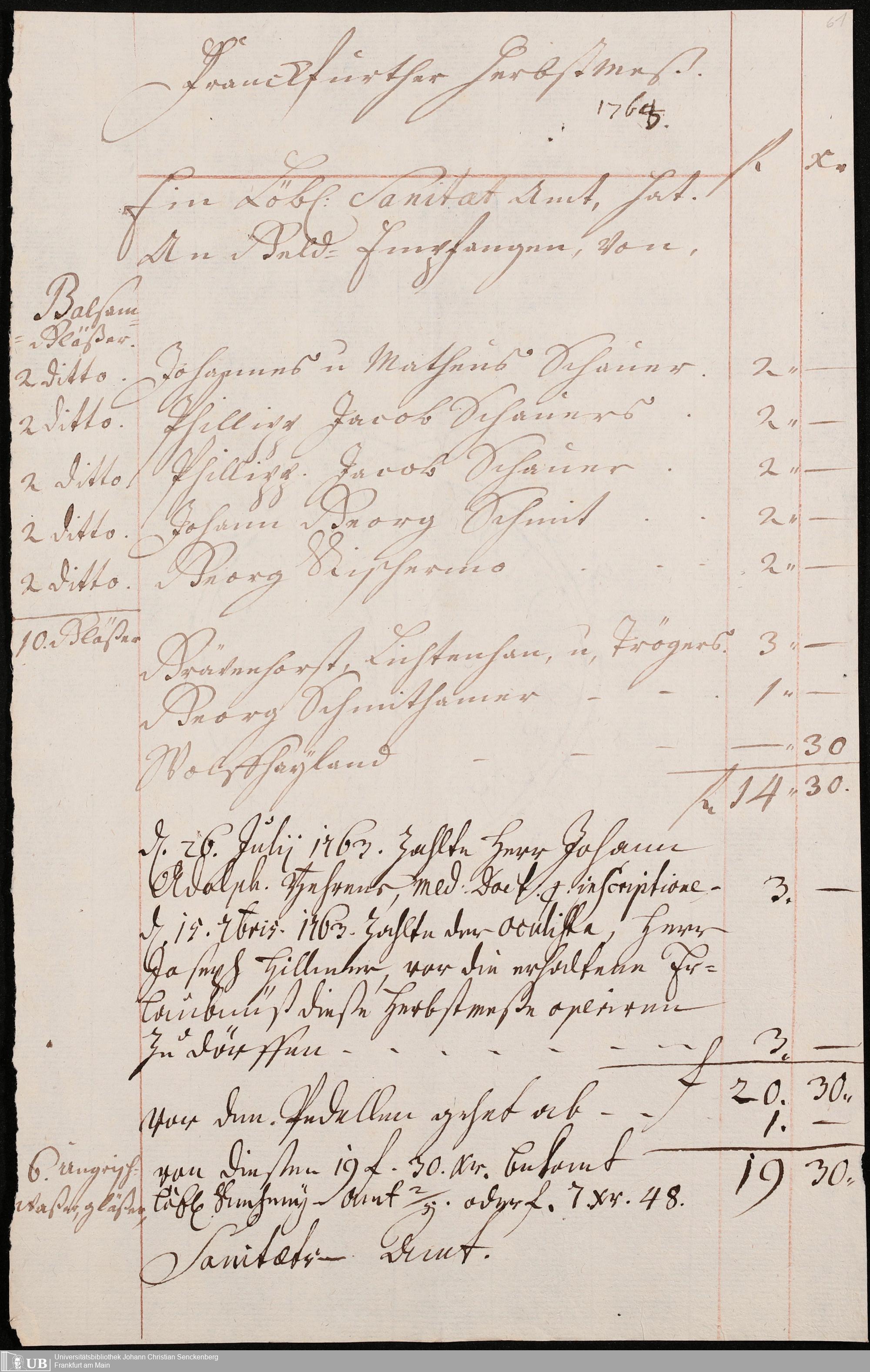 Na 31 Nachlass Johann Christian Senckenberg, 306 - Aufrechnungen der an das Sanitätsamt zu zahlenden Beträge von Händlern