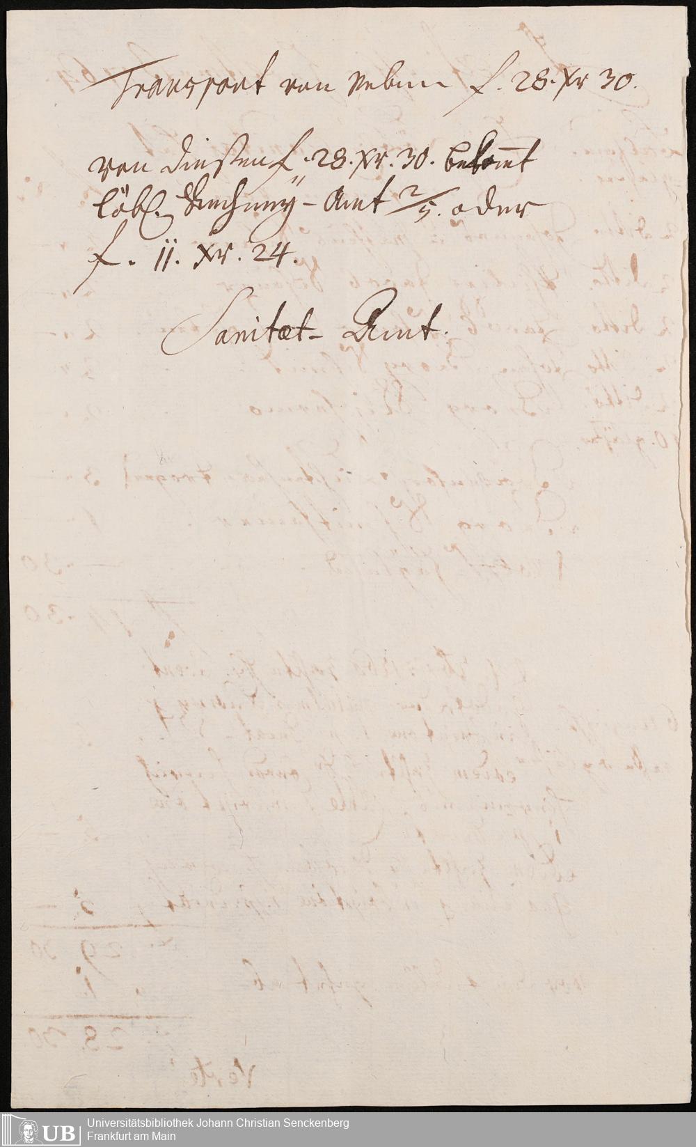 Na 31 Nachlass Johann Christian Senckenberg, 306 - Aufrechnungen der an das Sanitätsamt zu zahlenden Beträge von Händlern
