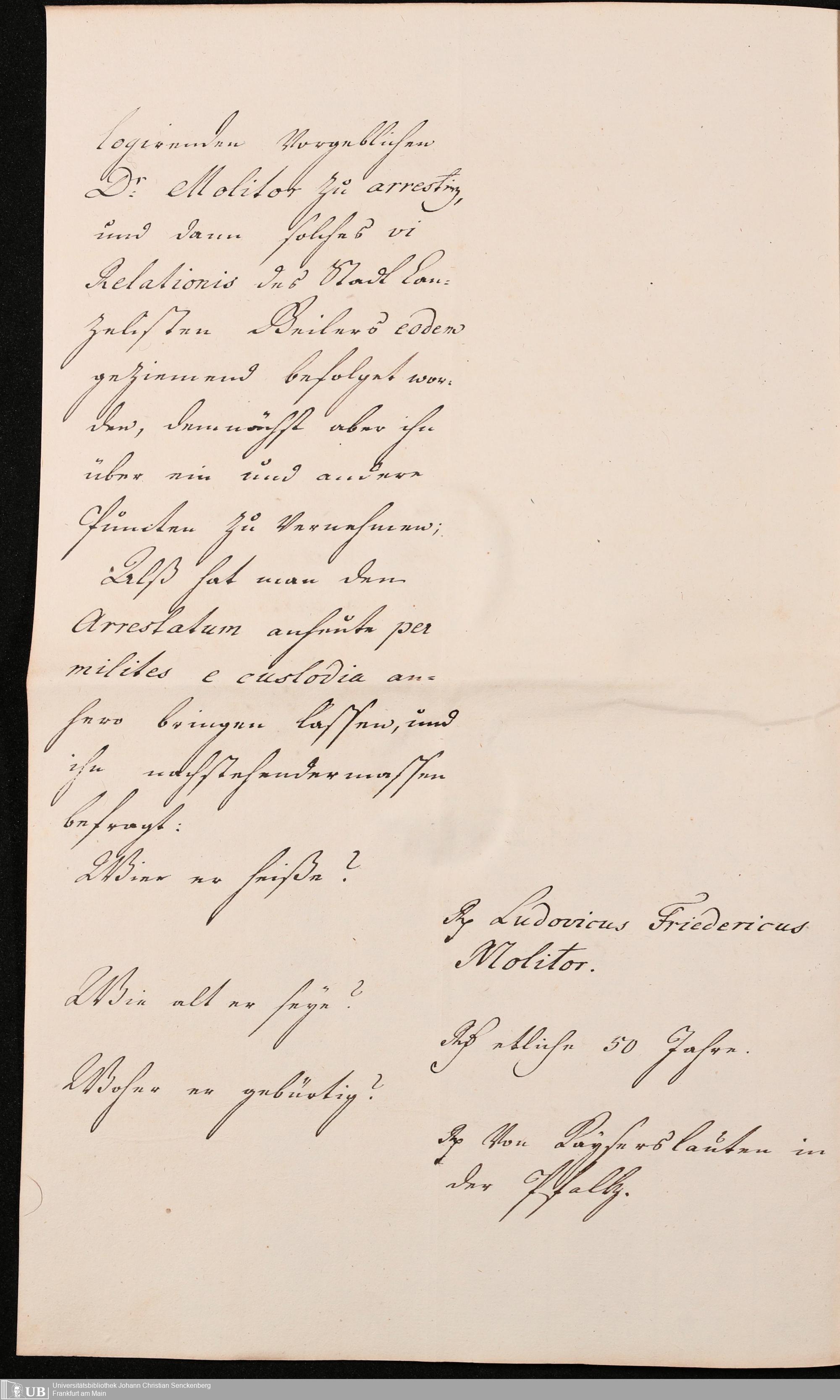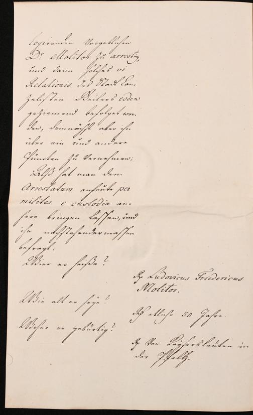 Na 31 Nachlass Johann Christian Senckenberg, 307 - Anzeigen Senckenbergs beim Senat gegen Molitor