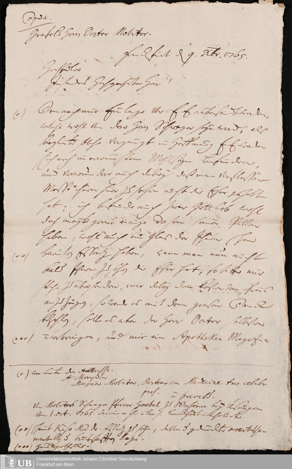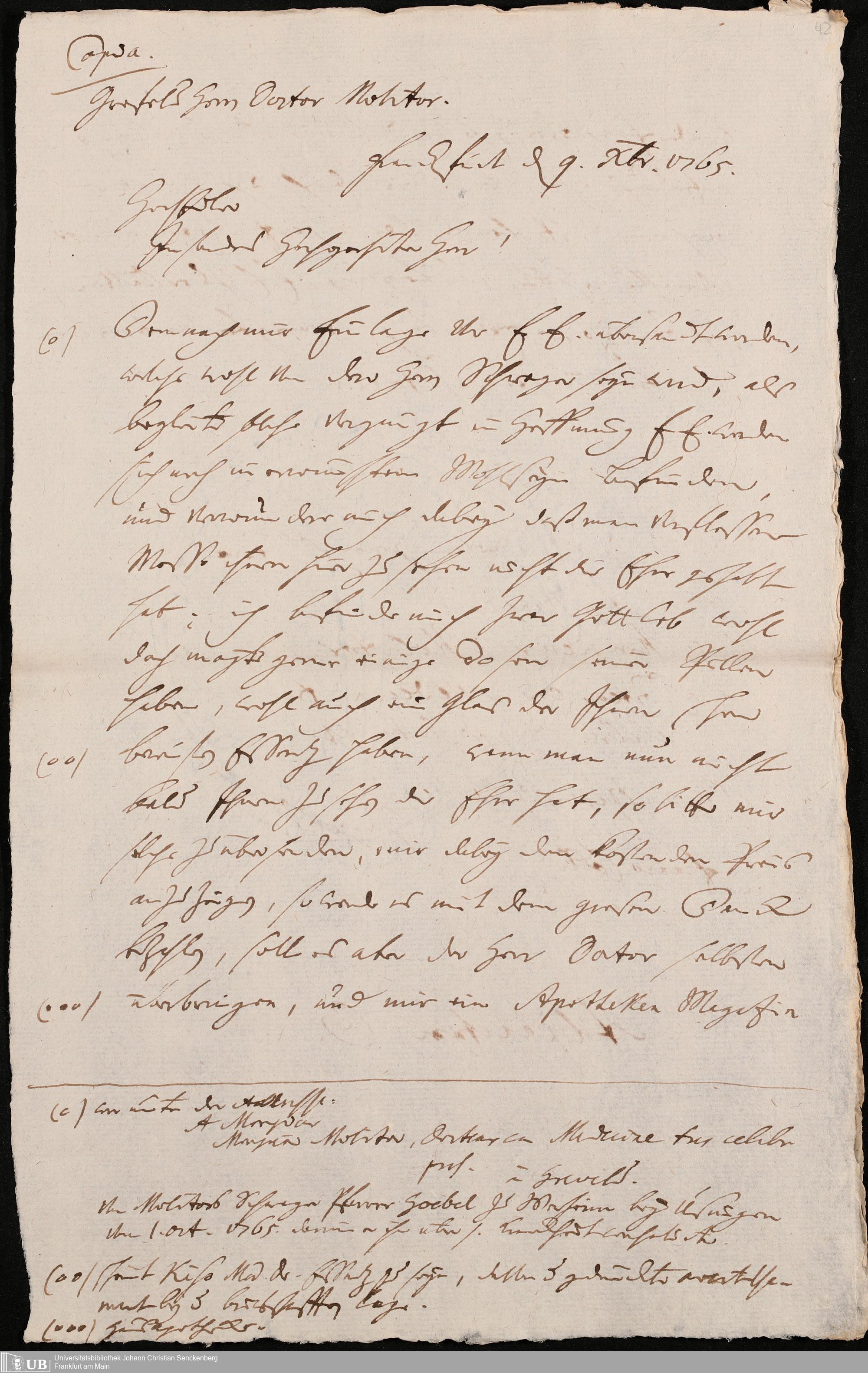 Na 31 Nachlass Johann Christian Senckenberg, 307 - Anzeigen Senckenbergs beim Senat gegen Molitor