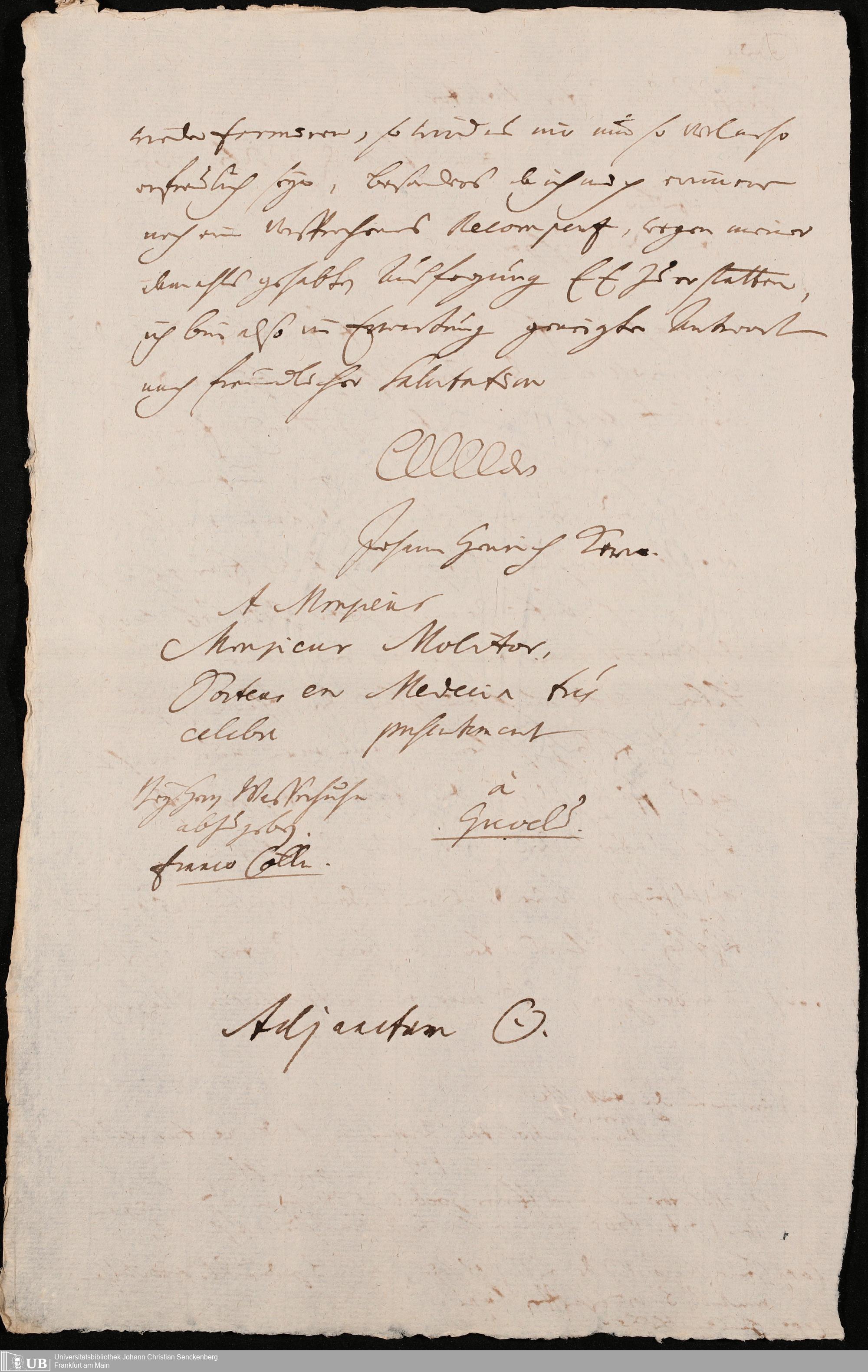 Na 31 Nachlass Johann Christian Senckenberg, 307 - Anzeigen Senckenbergs beim Senat gegen Molitor