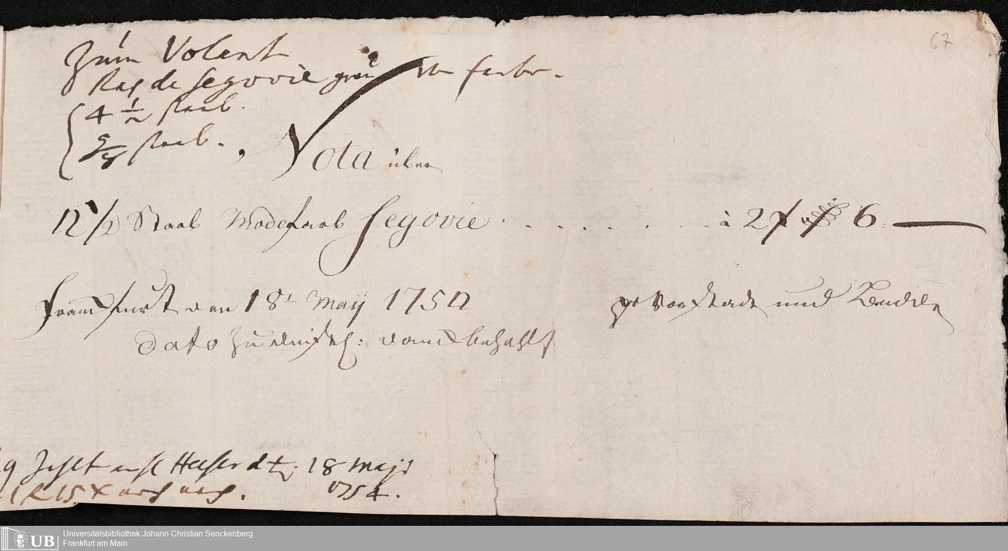 Na 31 Nachlass Johann Christian Senckenberg, 319 - Rechnungen, Quittungen