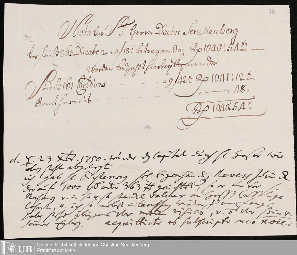 Na 31 Nachlass Johann Christian Senckenberg, 319 - Rechnungen, Quittungen