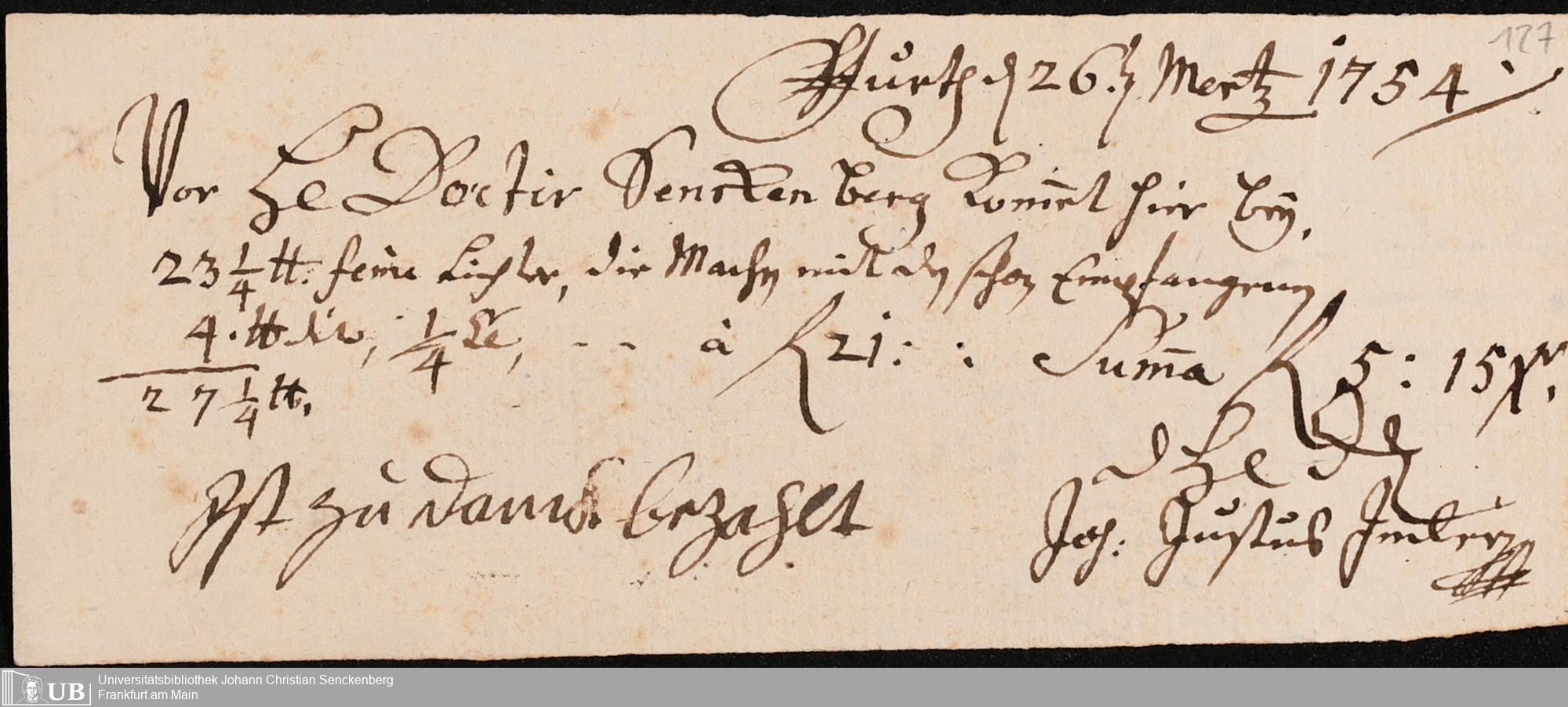 Na 31 Nachlass Johann Christian Senckenberg, 319 - Rechnungen, Quittungen
