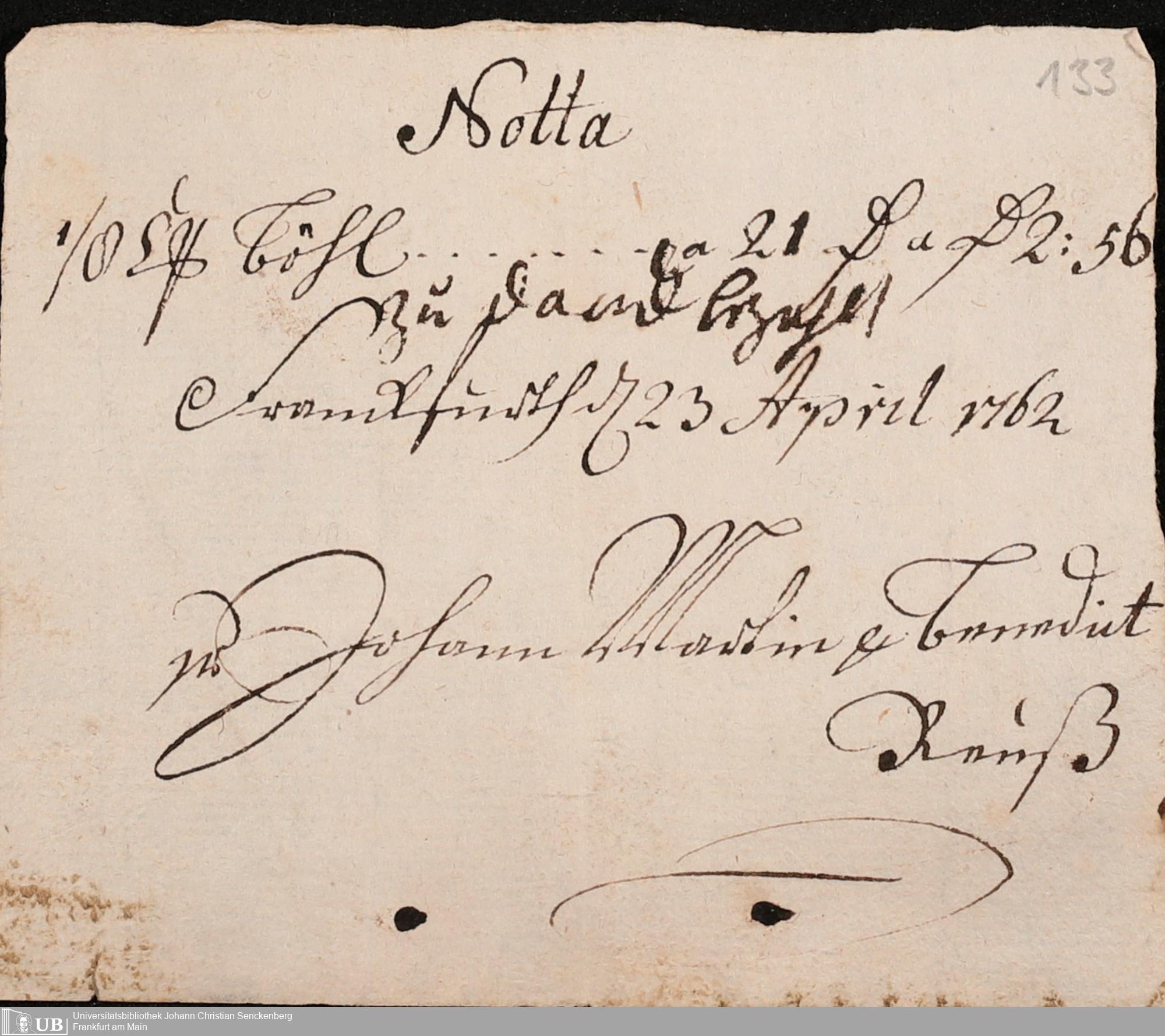Na 31 Nachlass Johann Christian Senckenberg, 319 - Rechnungen, Quittungen