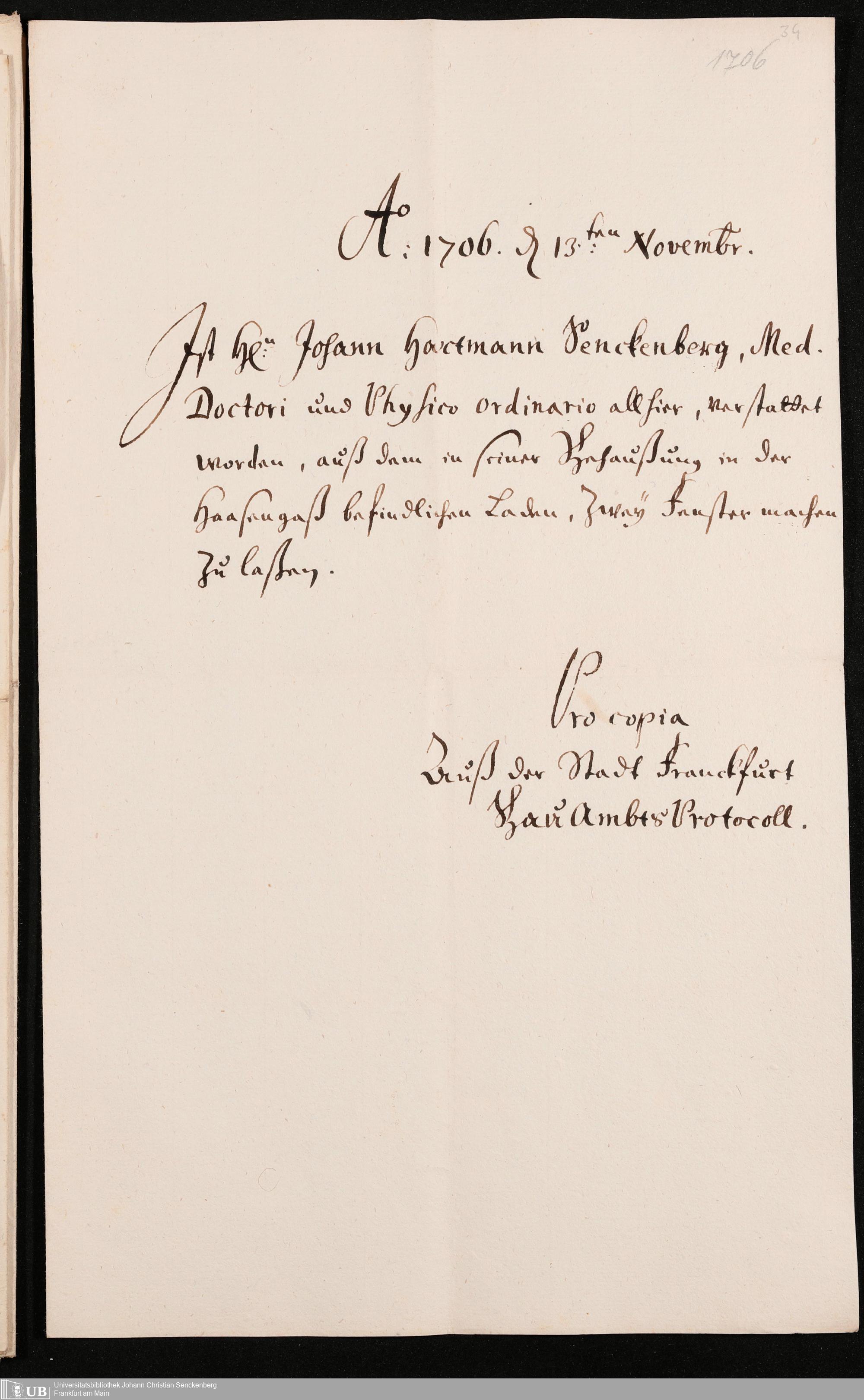 Na 31 Nachlass Johann Christian Senckenberg, 320 - Das Senckenbergische Haus in der Hasengasse