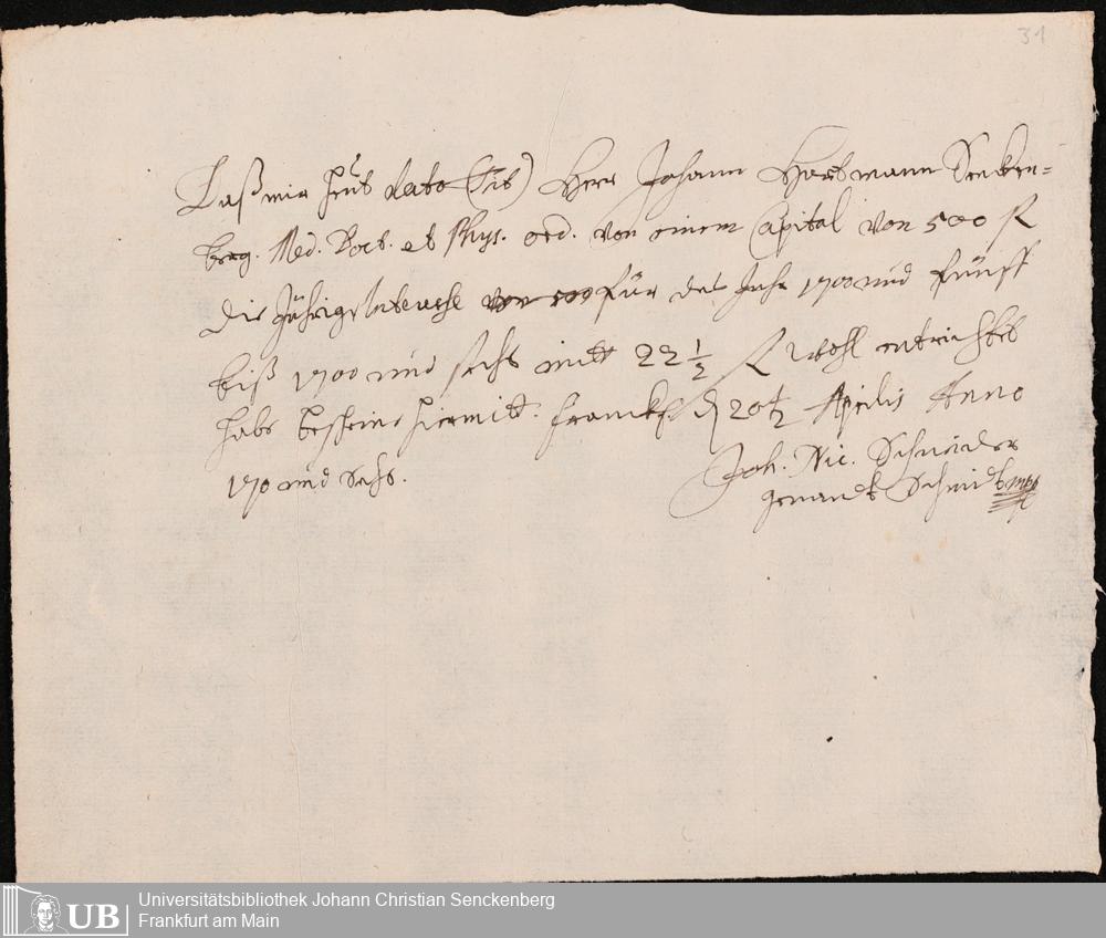 Na 31 Nachlass Johann Christian Senckenberg, 320 - Das Senckenbergische Haus in der Hasengasse
