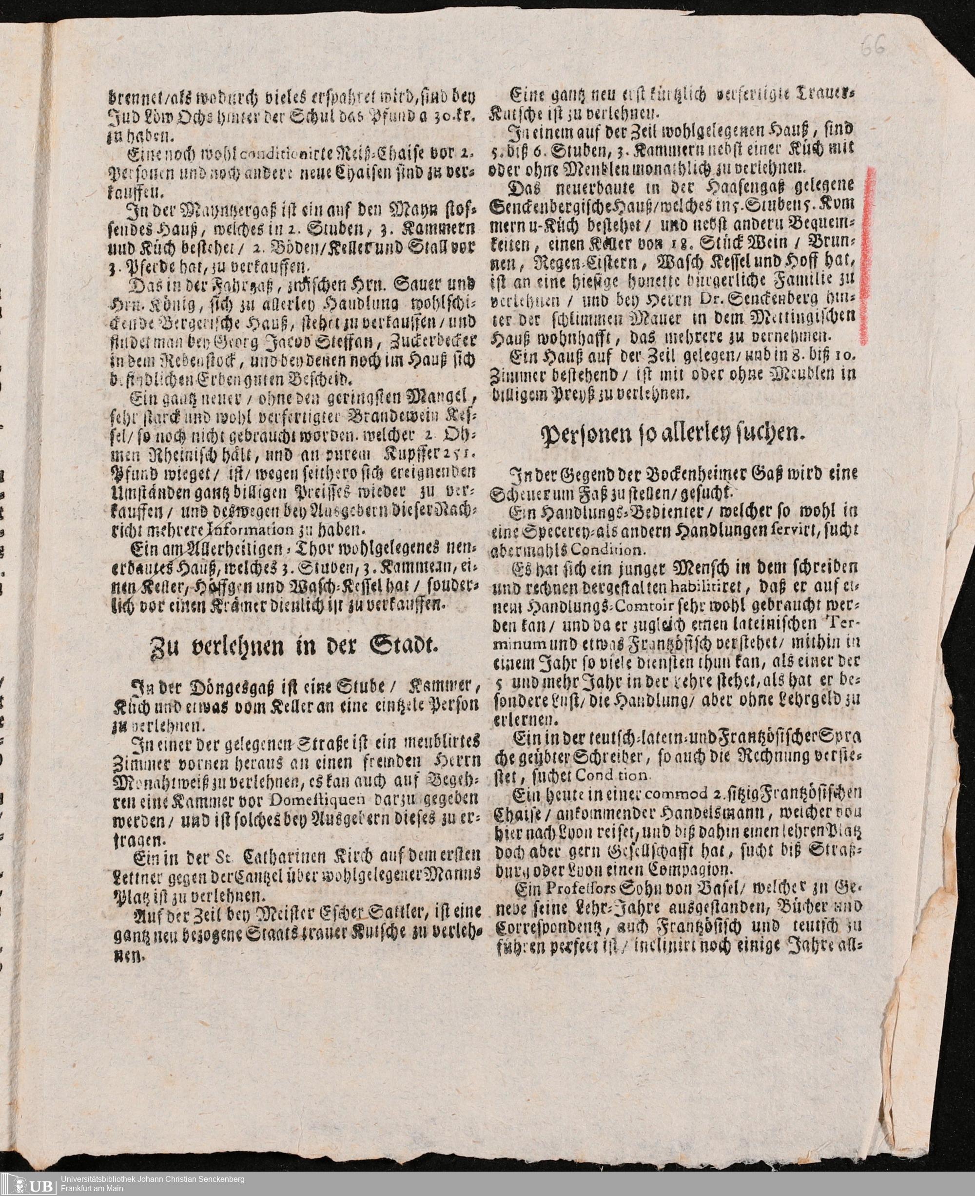 Na 31 Nachlass Johann Christian Senckenberg, 320 - Das Senckenbergische Haus in der Hasengasse