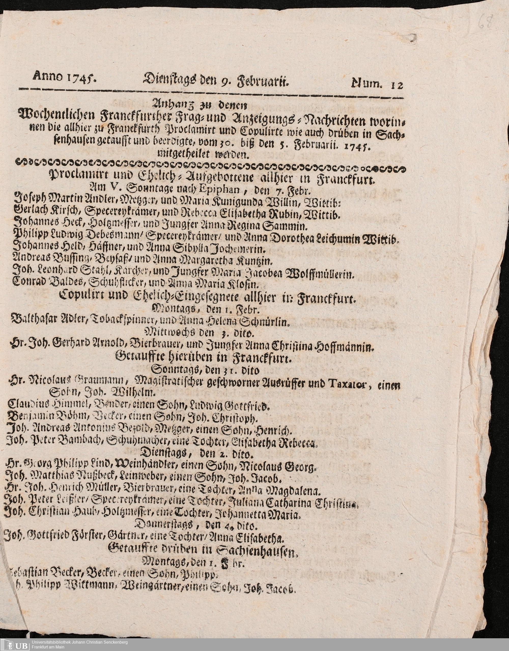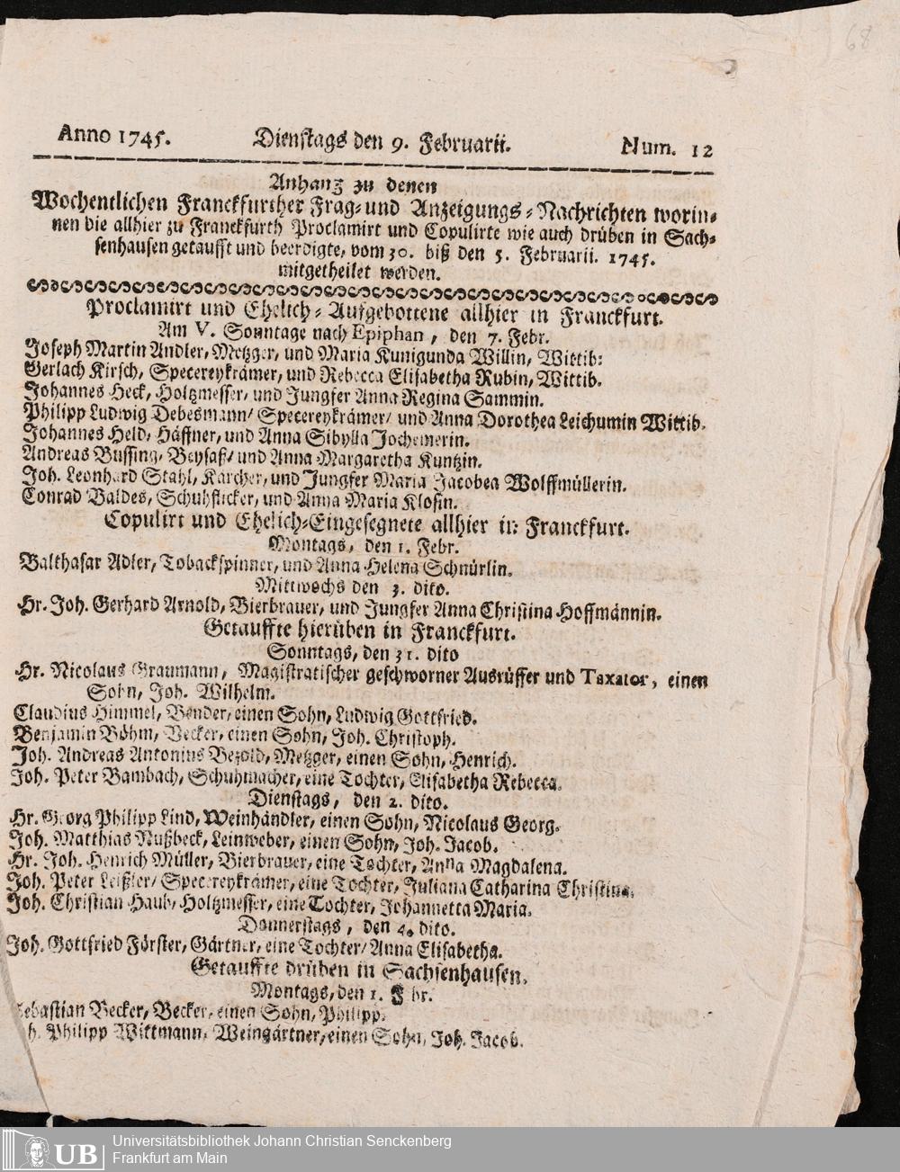 Na 31 Nachlass Johann Christian Senckenberg, 320 - Das Senckenbergische Haus in der Hasengasse
