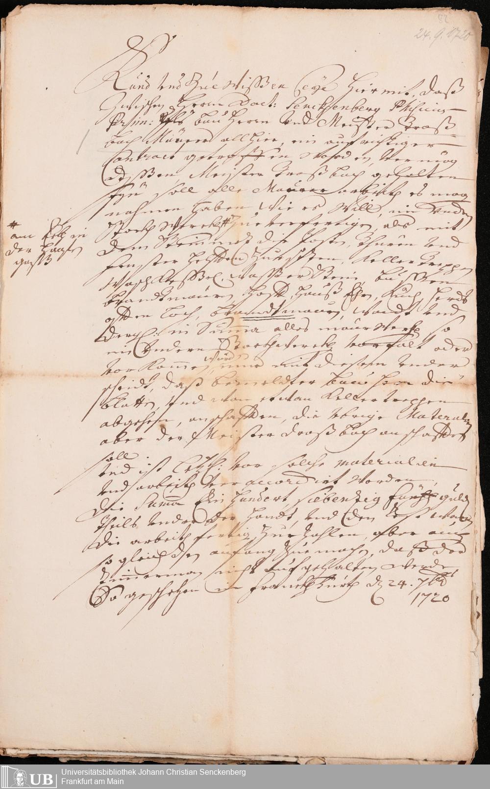 Na 31 Nachlass Johann Christian Senckenberg, 320 - Das Senckenbergische Haus in der Hasengasse