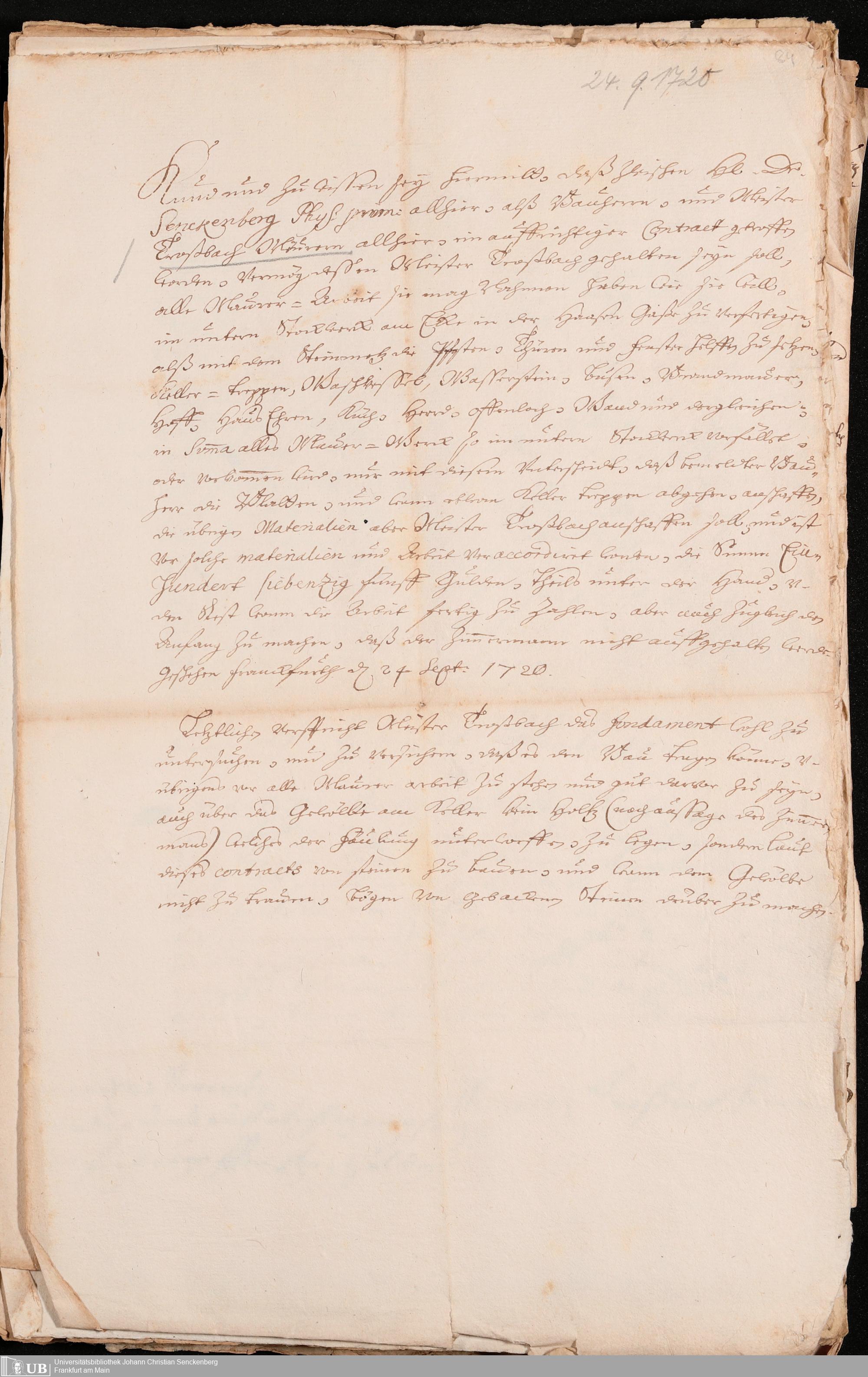 Na 31 Nachlass Johann Christian Senckenberg, 320 - Das Senckenbergische Haus in der Hasengasse