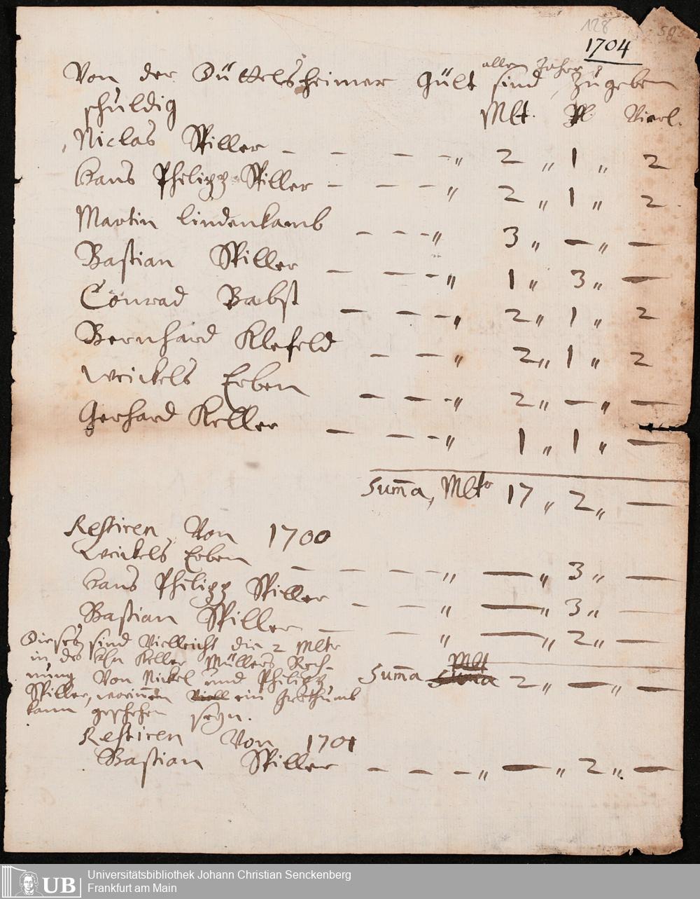 Nachlass Johann Christian Senckenberg