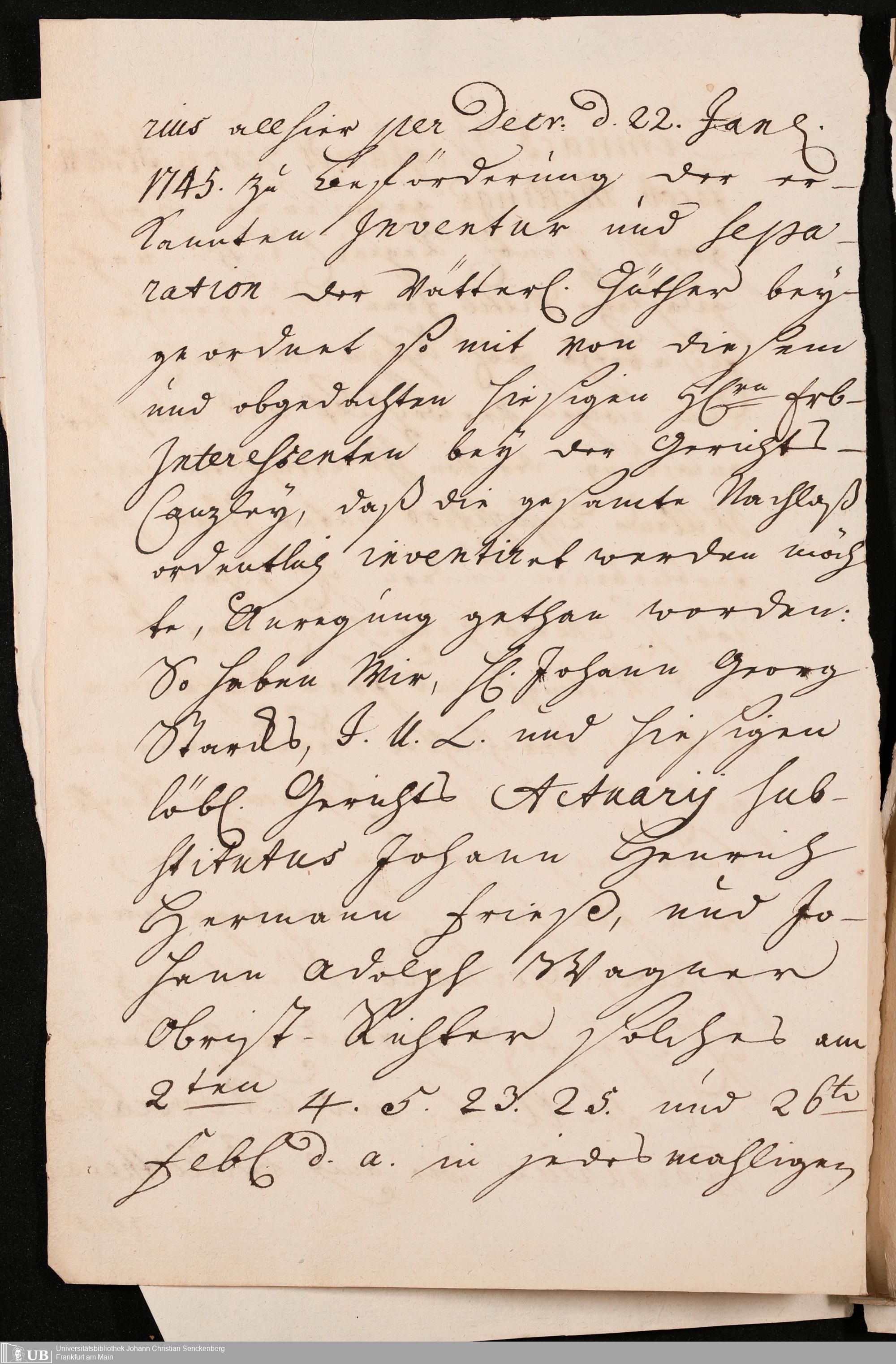 Na 31 Nachlass Johann Christian Senckenberg, 322 - Erbteilung Metting