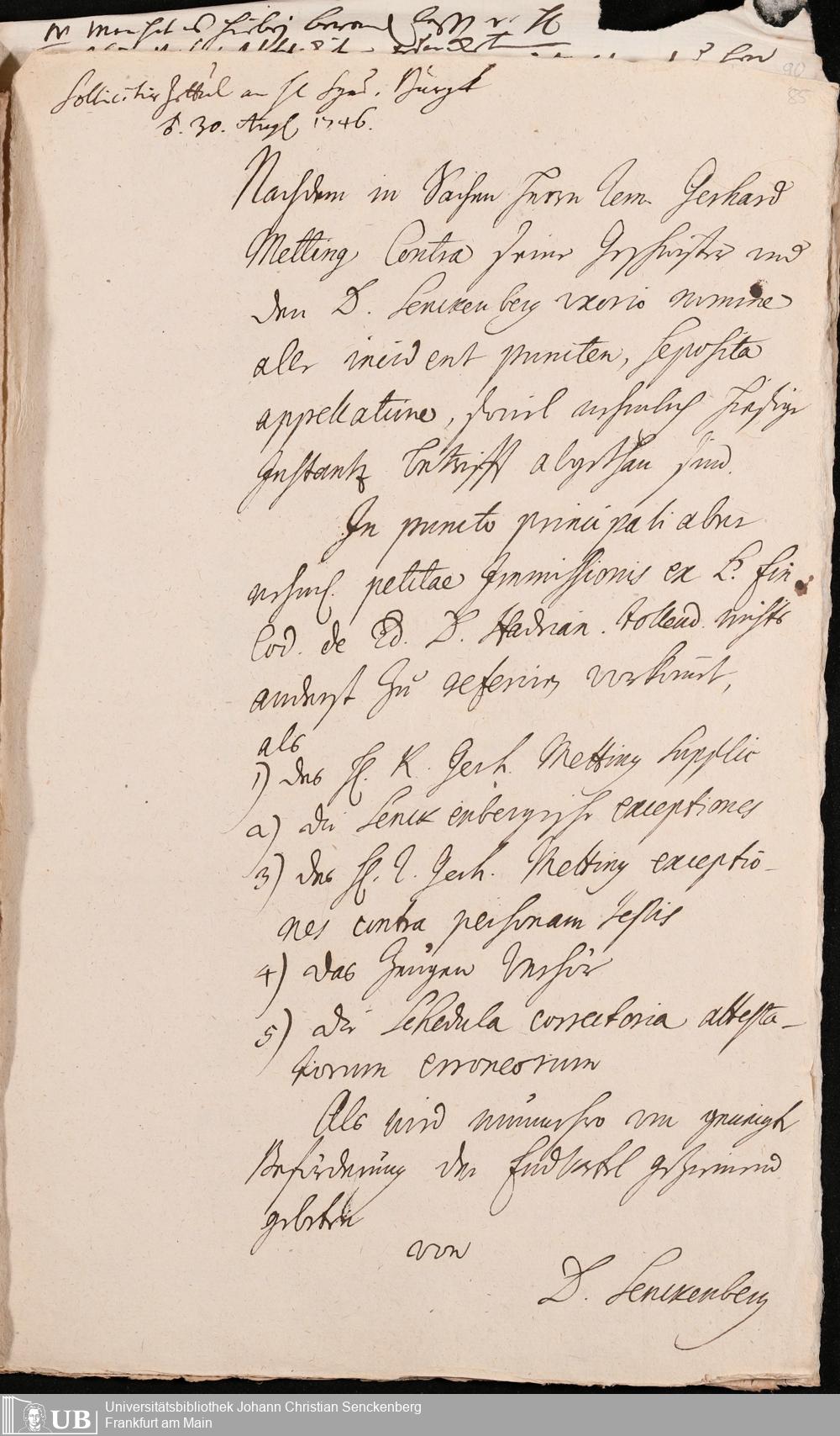 Na 31 Nachlass Johann Christian Senckenberg, 322 - Erbteilung Metting