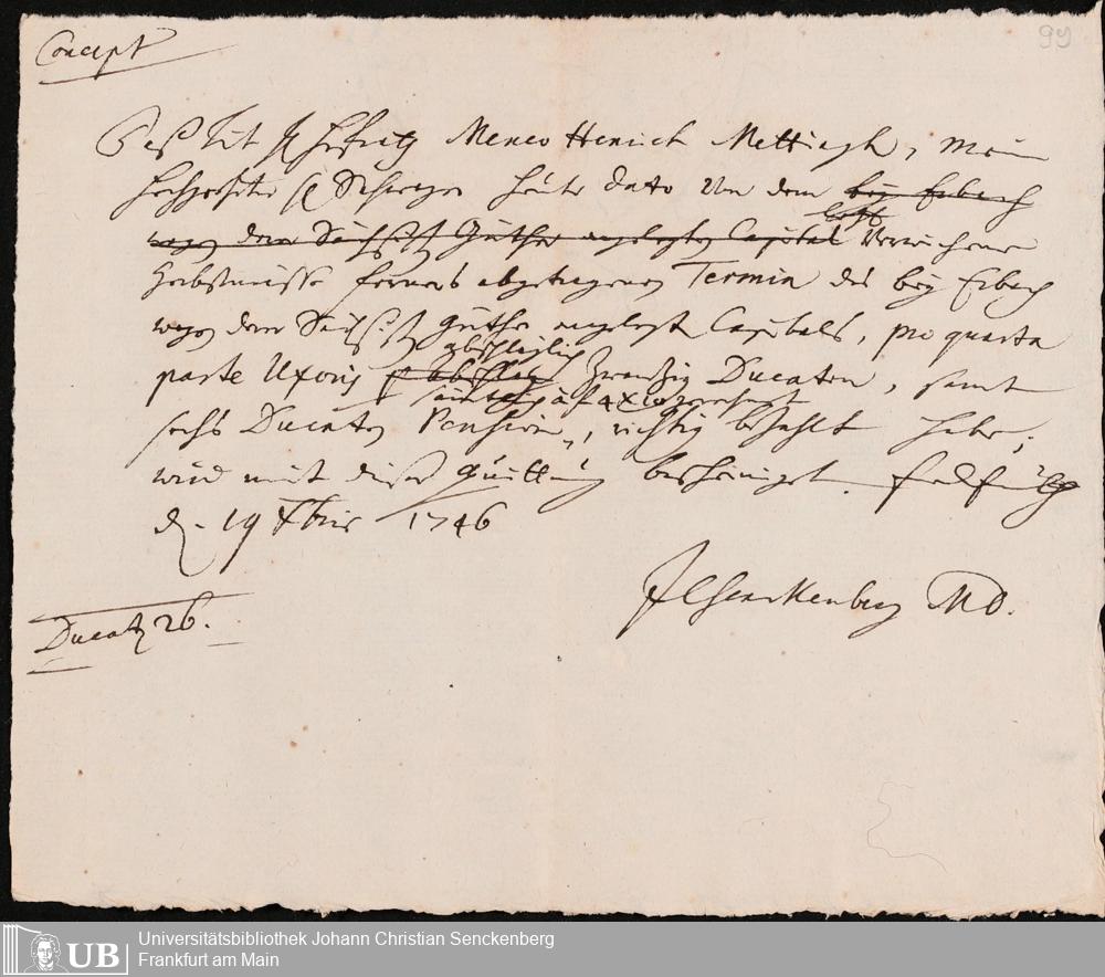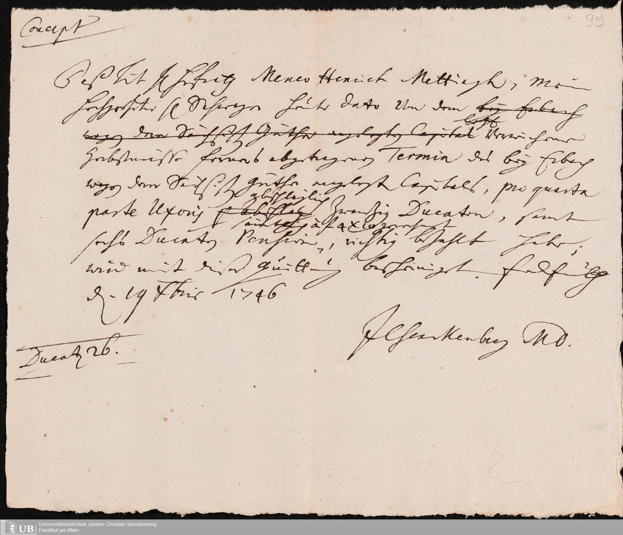 Na 31 Nachlass Johann Christian Senckenberg, 322 - Erbteilung Metting