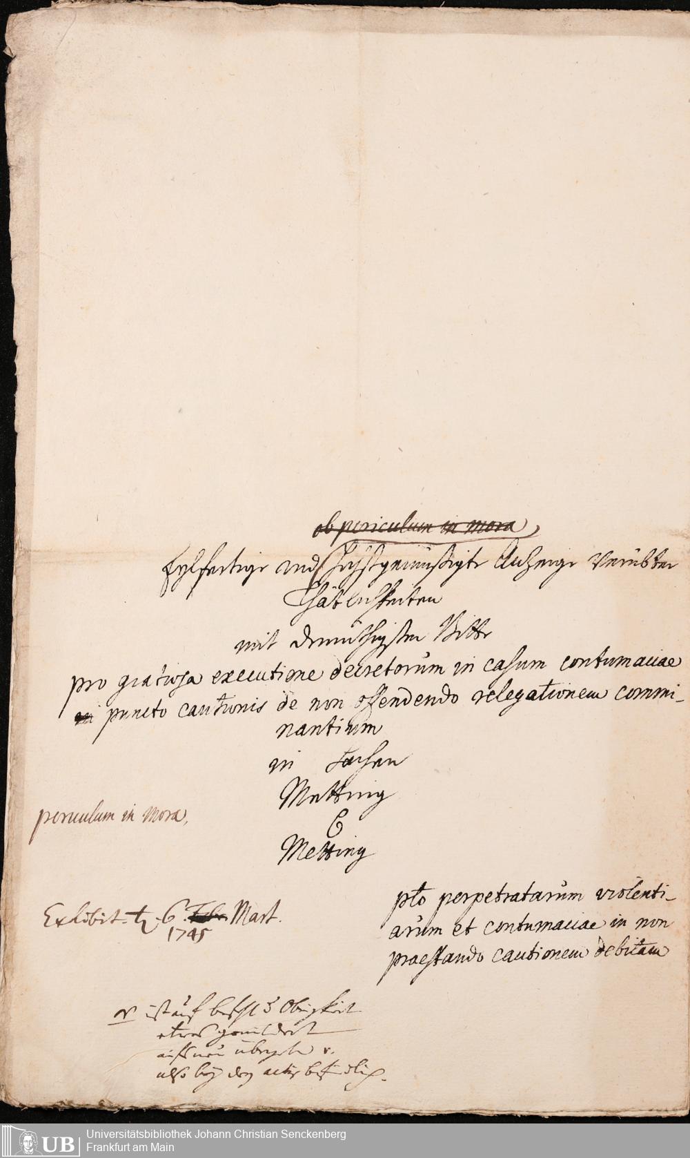 Na 31 Nachlass Johann Christian Senckenberg, 323 - Erbauseinandersetzung Mettingh I Rechtsstreit um das Haus